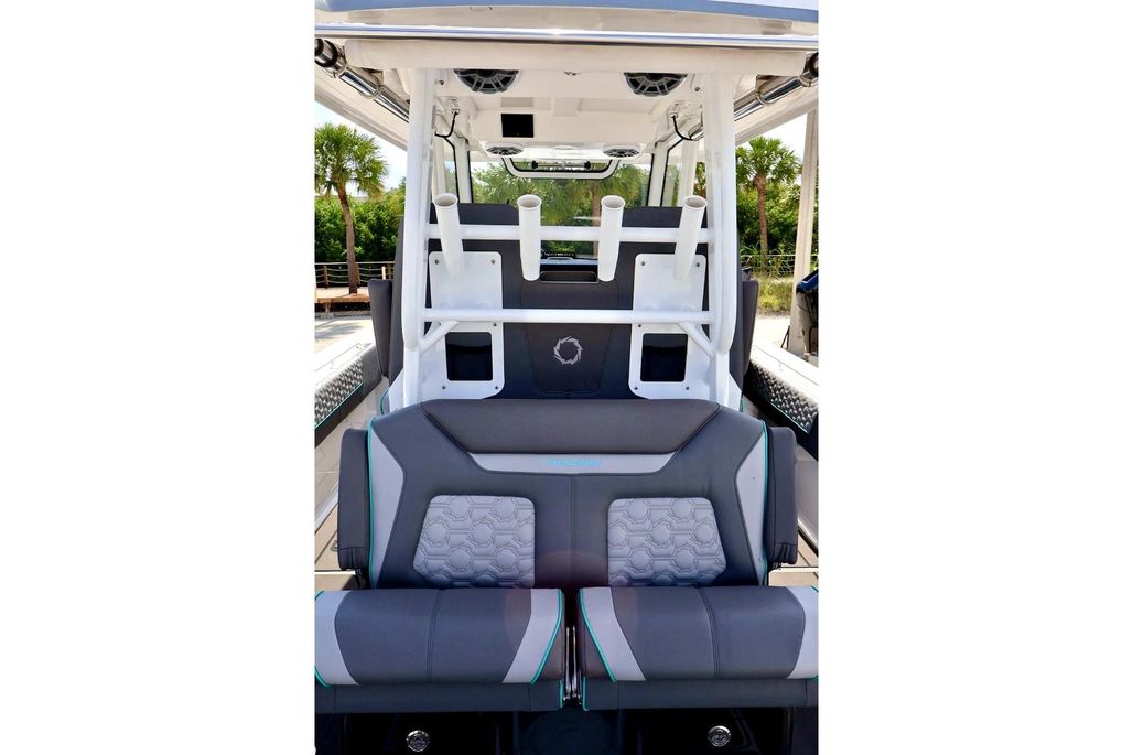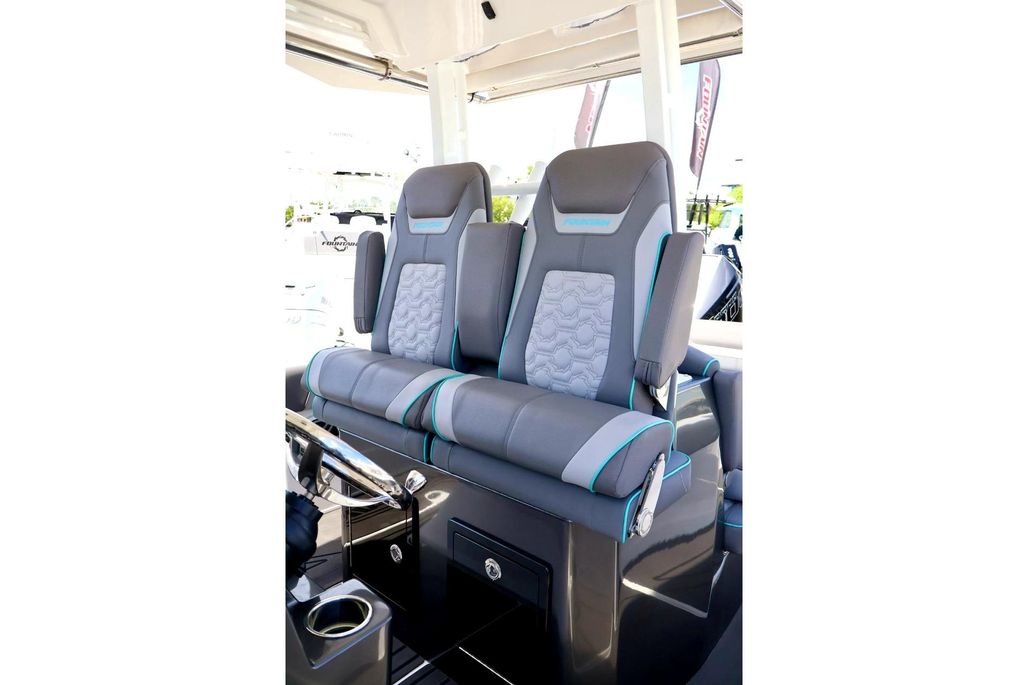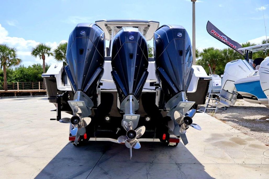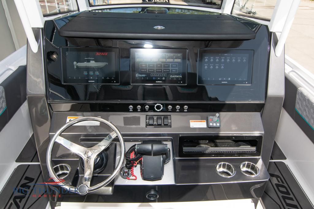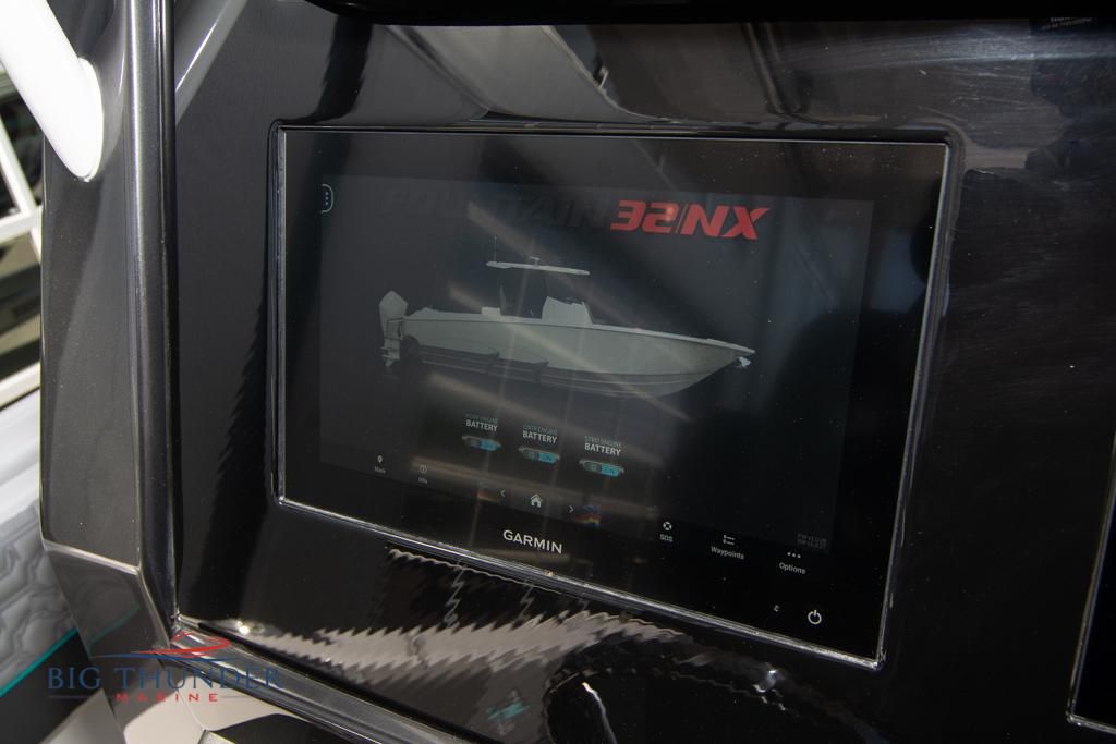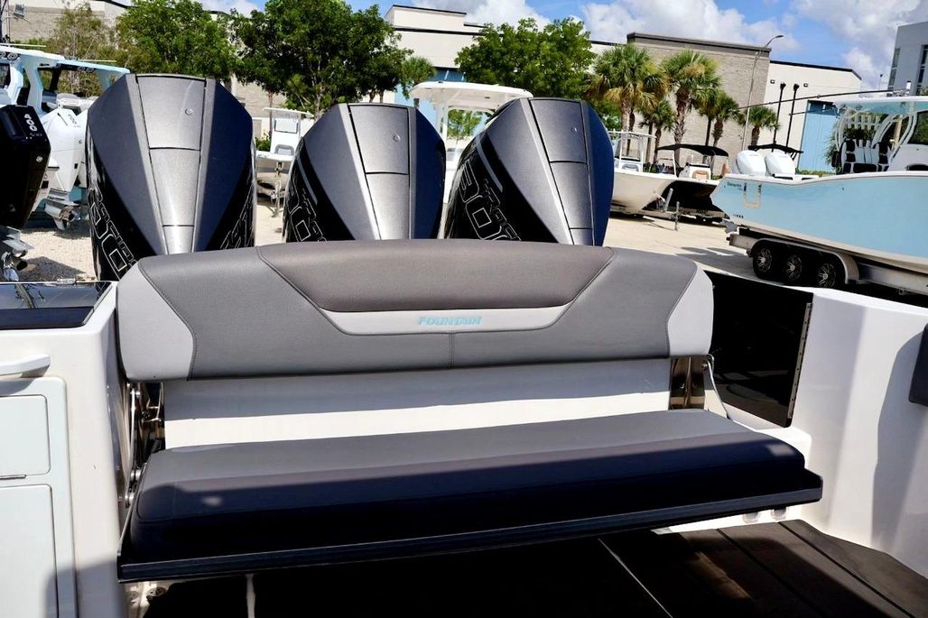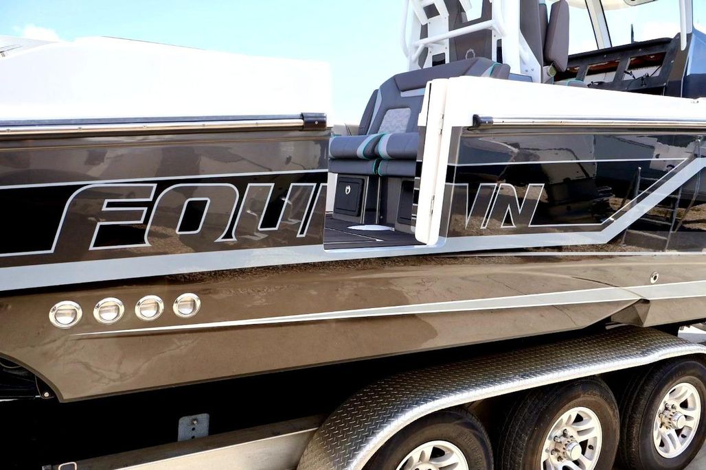 2022 Fountain 32 NX Triple Custom paint matched Mercury 300R Verado's w/ DTS controls. 280 K-Planes. Bow thruster. Engine flushing system. Custom paint & graphics. Premium NX Sport upholstery upgrade. Lumitec Sea Blaze 2 RGB underwater lights. Bow seating w/ upholstered seat backs & bottom w/ storage. Folding transom bench seat. Cockpit side dive door w/ ladder. Electric SureShade. Screened portlight. Triple Garmin 8612 multi-function displays. Airmar B60 transducer. Premium JL Audio w/ Fusion RA770 touch screen entertainment center w/ built in WiFi, (6) 7.7 Spkrs. w/ custom painted grills, (2) 10" subs w/ custom painted grills, (1) 1500W 6 Ch amp & (1) 2250W mono block amp. XM Radio ready option. Wireless phone charging pad. Stainless steel steering wheel w/ "speed knob". Windshield wiper. Enclosed head w/ marine toilet, overboard discharge, fresh water glush & holding tank, fresh water sink. Fresh & raw water wash downs. Transom shower. Anchor windlass w/ thru hull striker plate, polished stainless steel plow, 15' of 5/16" galvanized chain & 150' of 5/8" 8-strand braided rope. Battery charging system. Trailer not included, new trailer quotes available separate. Financing and nationwide delivery also available, all 2010 and newer model year trades considered. Call for more info and demo scheduling.