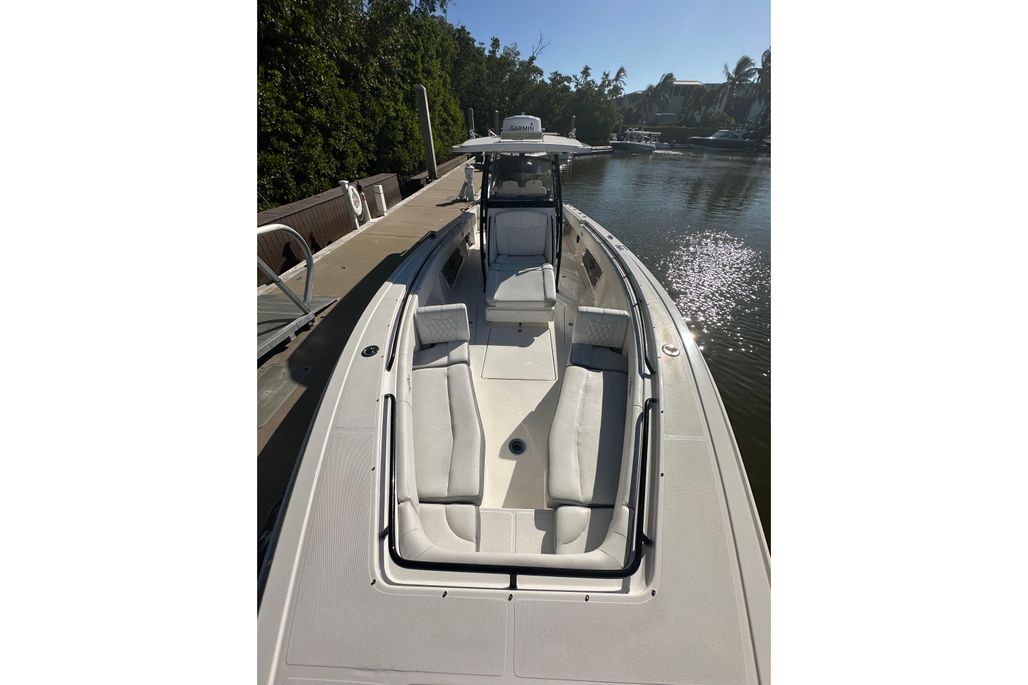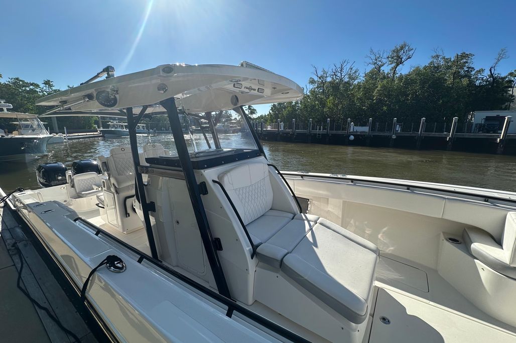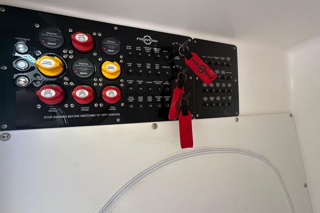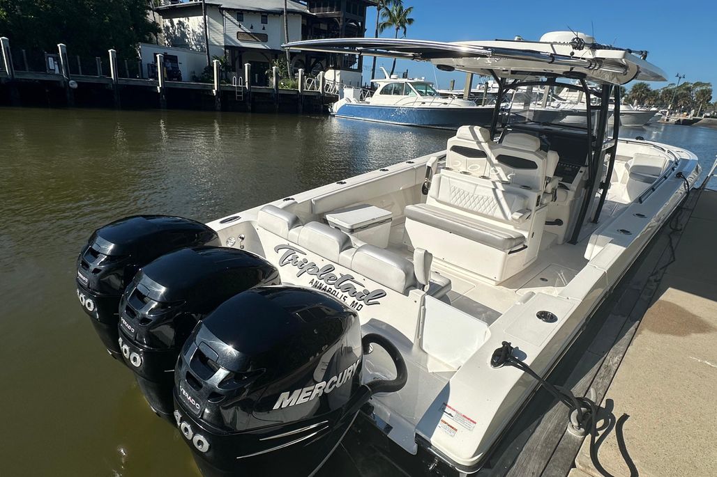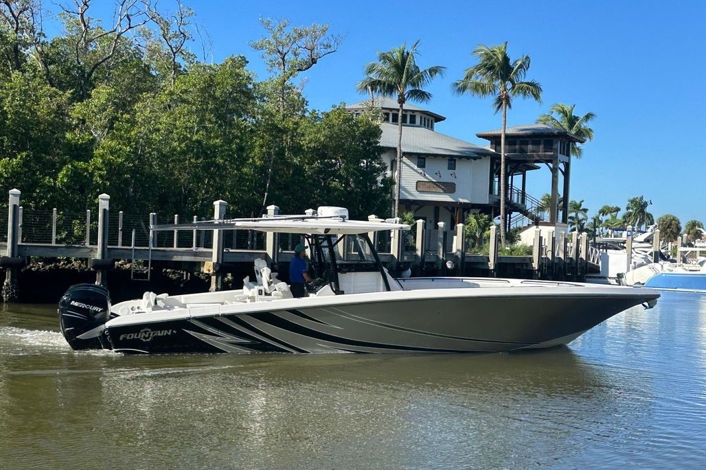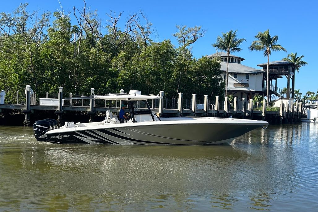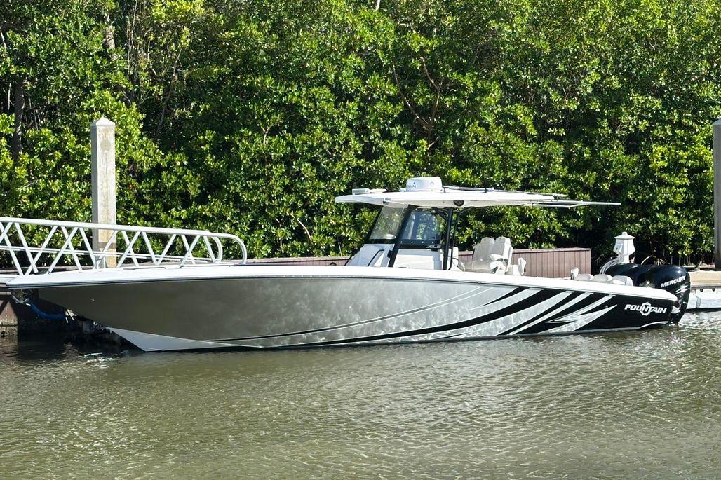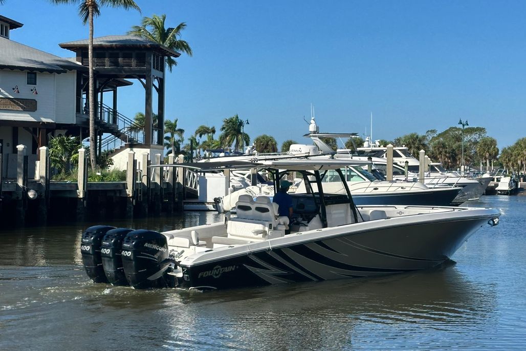 Introducing the stunning 2022 Fountain 38 CC LS, a remarkable center console boat that combines performance and elegance. With an impressive overall length of 38.3 feet, this vessel is designed for both leisure and adventure on the water. Crafted from durable fiberglass, the hull ensures stability and resilience. Powered by twin Mercury outboard engines, each delivering a robust 400 horsepower, this boat offers exhilarating speed and responsiveness, making it perfect for thrilling outings. With only 389 hours of use, the engines are in excellent condition, ready for your next journey. The Fountain 38 CC LS is equipped with essential features, ensuring a smooth and enjoyable experience. Its spacious design allows for comfortable movement, making it ideal for entertaining guests or enjoying a day of fishing. Experience the perfect blend of power and style with this exceptional boat, ready to create unforgettable memories on the water.