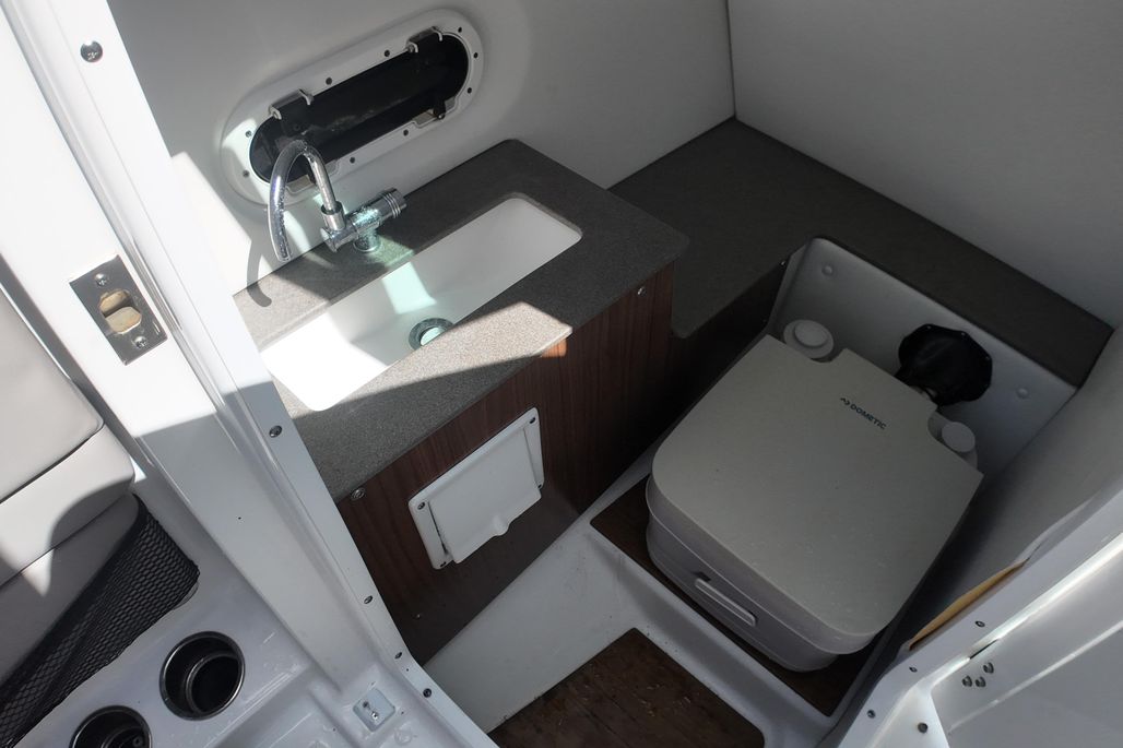 From bow to stern, the HD8 showcases Four Winns’ reputation for quality. Plush seating with premium upholstery, a fully appointed head compartment, and an expansive swim platform make every outing more enjoyable. The open bow seating features deep cushions and removable backrests, while the cockpit is designed for easy movement and abundant storage.