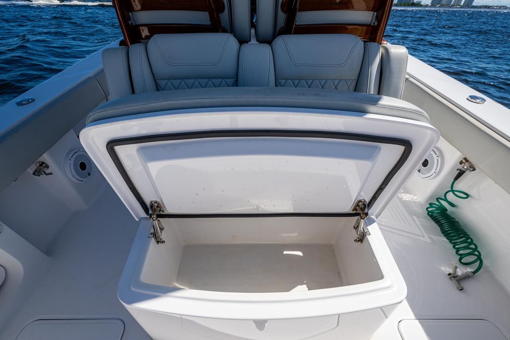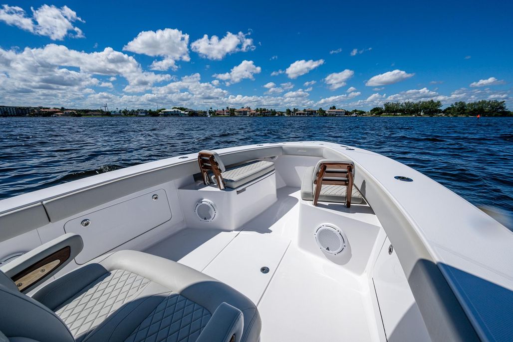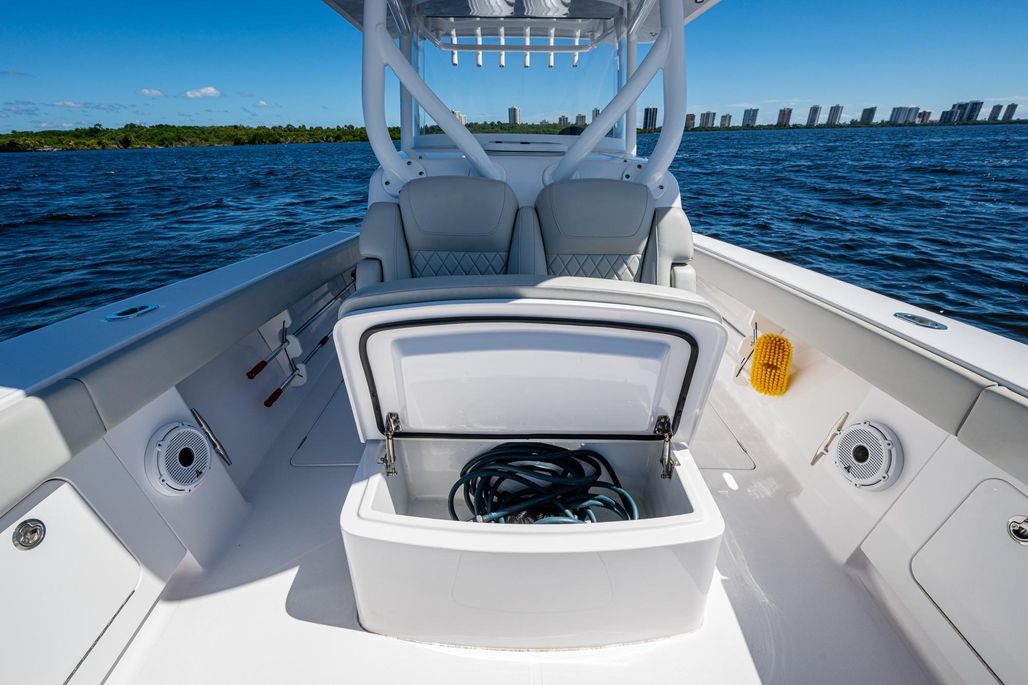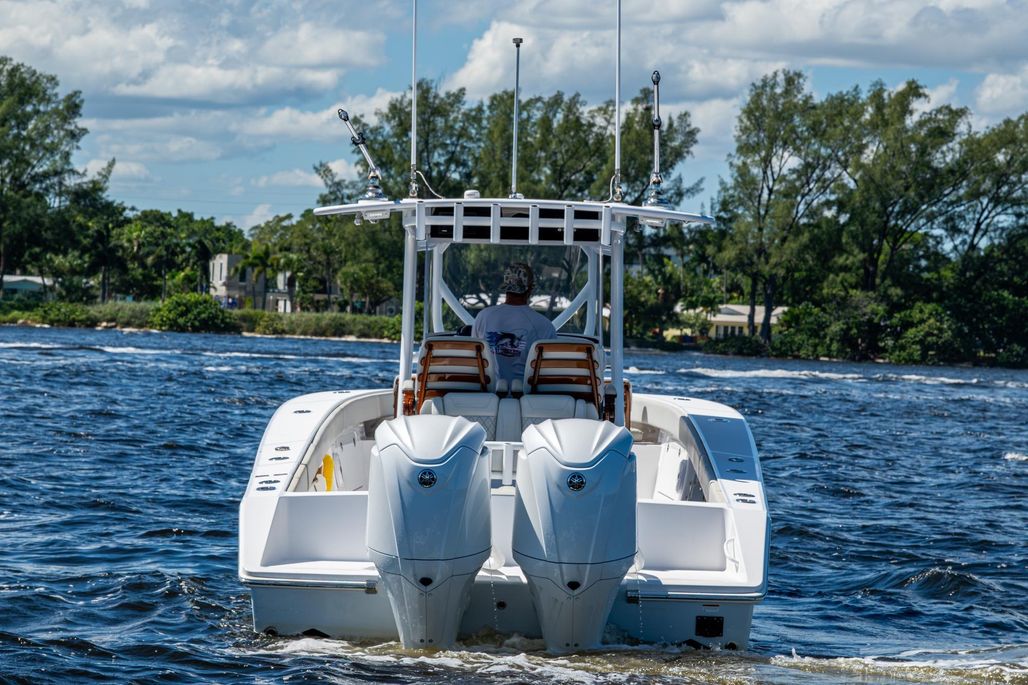 Powered by Twin Yamaha 300s with only 169 hours. The Jupiter 32 handles like a dream, being fast, responsive, and solid in rough water thanks to its deep-V hull and Posi-Stern design. The boat is built very well with resin-infused fiberglass and zero wood, so you’re getting long-lasting durability without the extra weight.