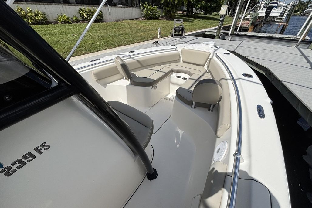 The 239FS offers the largest cockpit in its class, and loaded with features for both family comfort and serious fishing. She provides plenty of roominess and fishing features to bring home the big catch while also providing the comfort features of a relaxing bow lounge and an aft bench seat that can easily accommodate five across. With emphasis on comfort, fishing, and safety, your Family Sportsman will feature more seating and storage, even a changing/potty room, while having the fishing features you would expect in any center console design, like rod racks, trolling rod holders, live well, and even a macerated fish box in some models.\