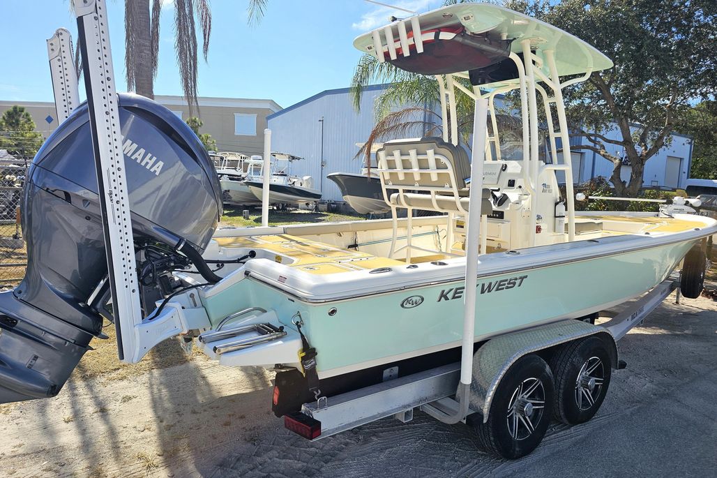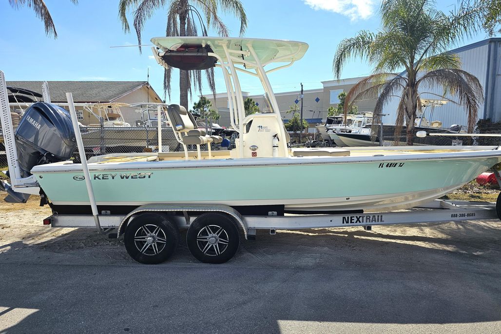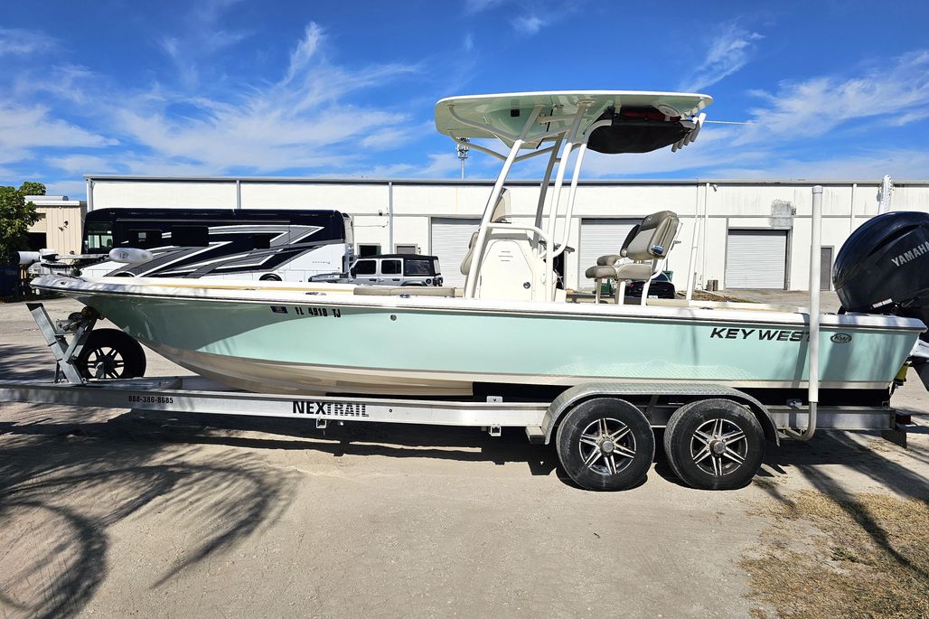 2022 Key West 250 Bay Reef in excellent condition. Yamaha 300 hp Four Stroke outboard with only 139 total hours on the boat. Bimini Blue hull color. White interior with Light brown simulated teak flooring.