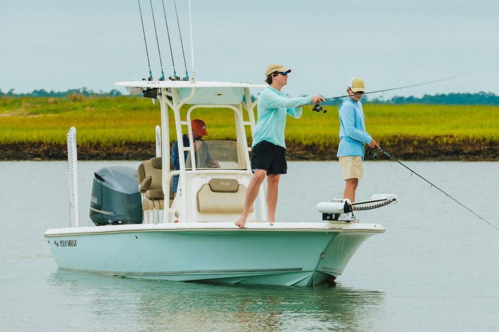 This feature-packed fishing machine is the largest of the Bay Reef lineup and can easily handle all your nearshore adventures. The 250 BR features an expansive uninterrupted bow fishing deck, as well as long under-gunnel rod storage capable of holding 9’+ fly rods, and tournament-sized live wells in the front and rear. It has expanded storage under the back deck, with the battery storage under the console so you can put up to five batteries completely out of the way. The expanded floor space allows for options such as the expanded lounge seat on the console which incorporates a huge macerated fish box or you can opt for the open floor plan with the standard console. If you are a live bait fishermen you can also add the huge live well leaning post, or stick with the standard leaning post and enjoy the open space it provides. Whether you are a recreational fisherman or a hardcore tournament angler, there is a Bay Reef to fit you. Every model includes two standard livewells, accommodation for even the longest fly rods, and the most storage and deck space in its class. The Bay Reef series also sports a bit less draft for improved performance and a great ride.