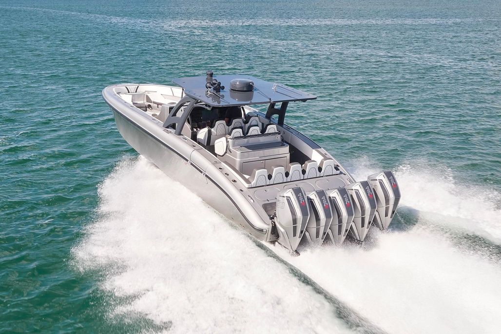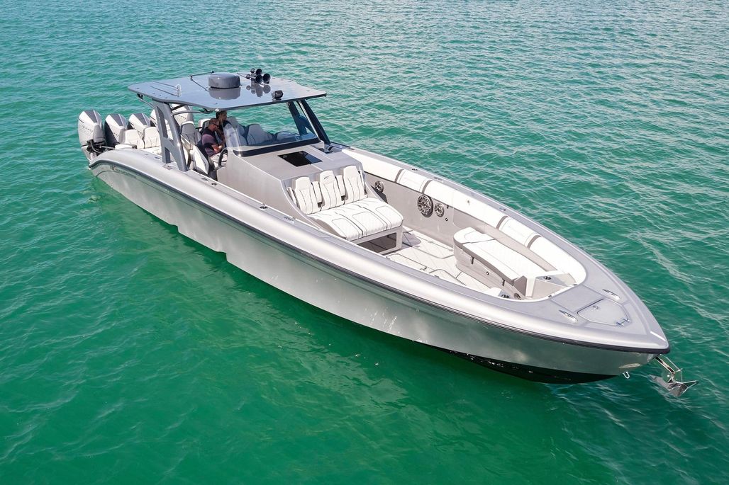 Step aboard DEVENZO, a custom-built 2022 Midnight Express 43 Open — the ultimate blend of performance and luxury. With her sleek silver-gray hull, diamond-stitched upholstery, and aggressive stance powered by five Mercury Racing 450Rs, she’s every bit the head-turner whether carving through offshore swells or pulling up to a sandbar. Thanks to her blistering speed and offshore capability, you can shoot over to the Bahamas for the day or cruise effortlessly between islands in no time, turning distant destinations into easy day trips.