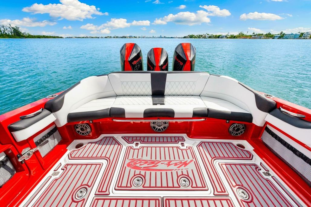 Turn heads and rule the waves with this stunning red 2022 39 Nor-Tech Sport Boat – a fusion of luxury, performance, and bold design. Powered by triple Mercury Racing outboards, this high-performance center console delivers exhilarating speed and precision handling, whether you're cruising the coast or chasing the horizon.