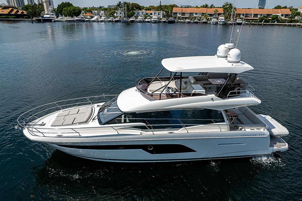 Her owners thoroughly enjoy cruising Miss K and are ready for their next boat. Miss K is a better-than-new Prestige 520 Fly loaded with custom options. She has been cared for with an "open checkbook" approach, which shows. If you're looking for one of the best-selling Prestiges, put Miss K at the top of your list.