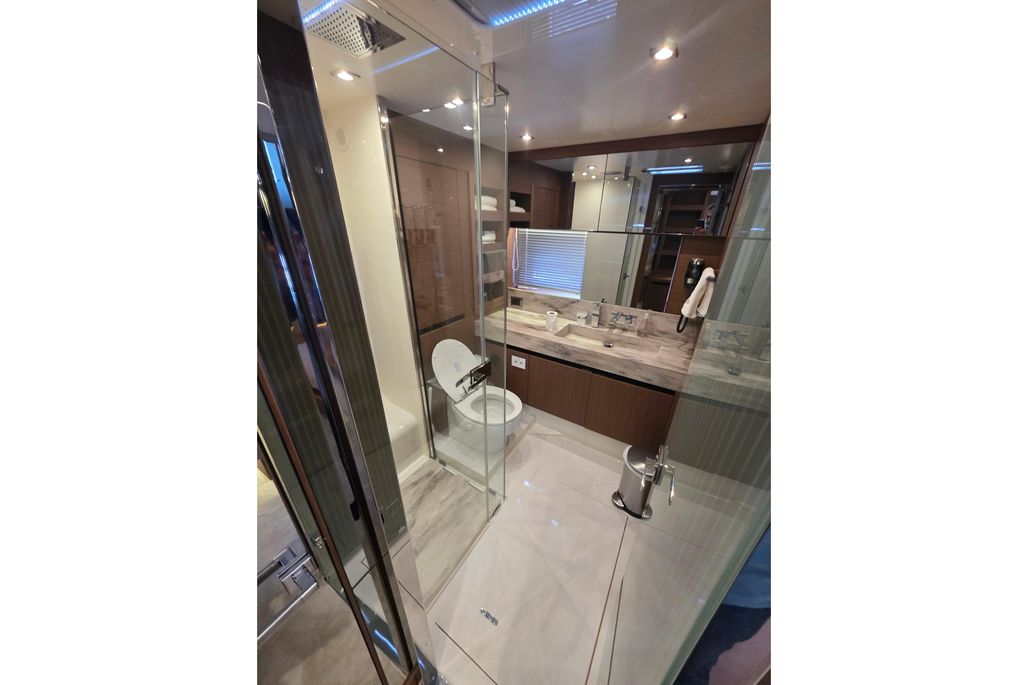 Private Owner's Suite: Located forward, this luxurious suite includes a king-sized berth, a comfortable sofa, a private walk-in closet, and large panoramic windows for a serene experience