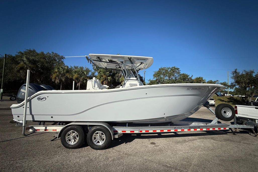 2022 Sea Fox 288 Commander powered by twin Yamaha F300XCBs with Digital Controls, Optimus Electric Steering, and 476 hours on the engines. Price includes a Magic Tilt Custom Welded Aluminum Trailer.