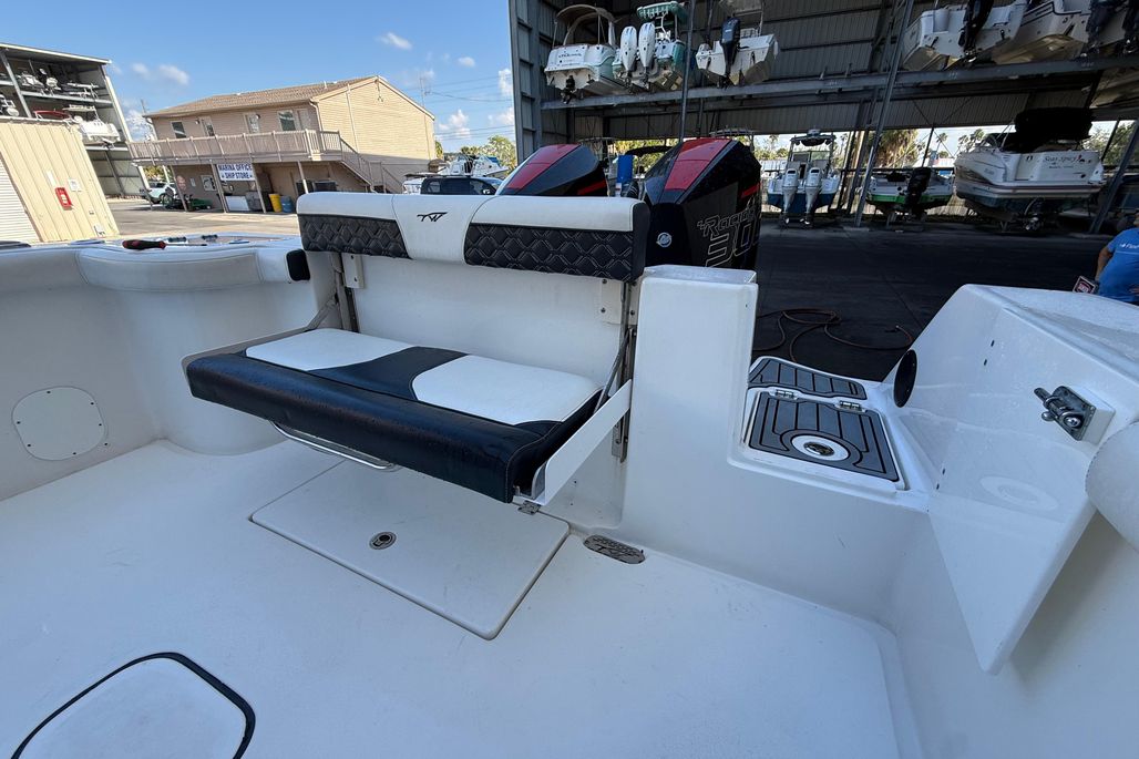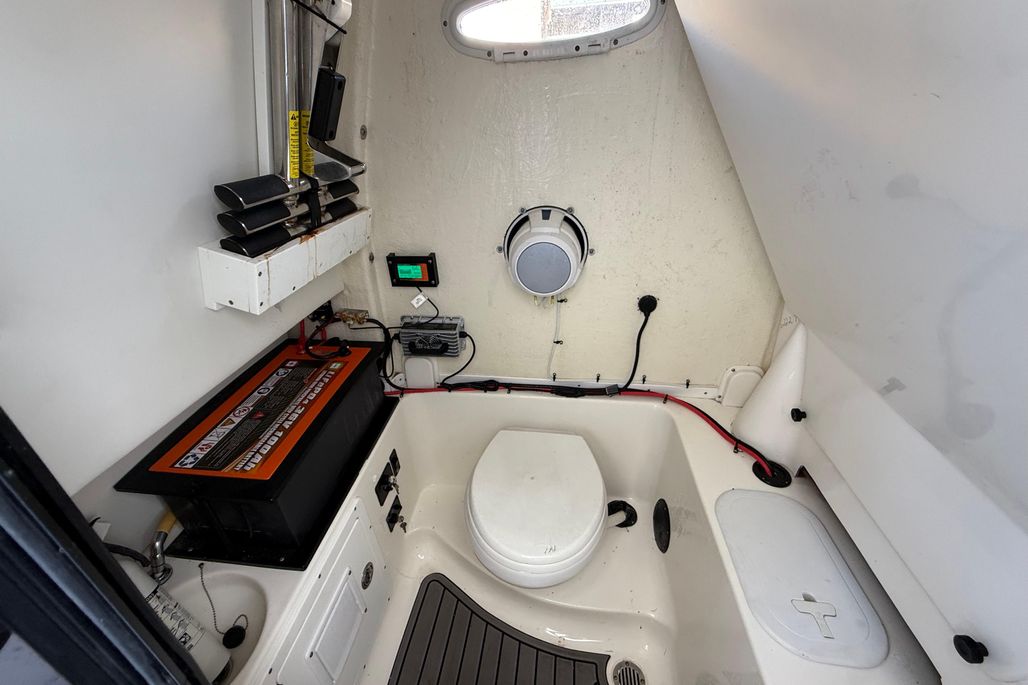 Fishing & Deck Systems • Taco Grand Slam 280 outriggers — top-mount with 15’ telescoping poles (tournament-capable spread) • Large insulated fish boxes and roomy livewell • Multiple rod holders and integrated rod storage throughout the gunwales and leaning post • Electric windlass anchor — rapid, reliable anchoring for reef/wreck or family anchoring stops • Lumitec SeaBlaze RGBW underwater lights for night fishing and ambiance • 3-bank battery charger and well-configured electrical system
