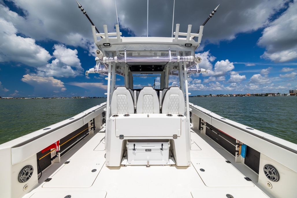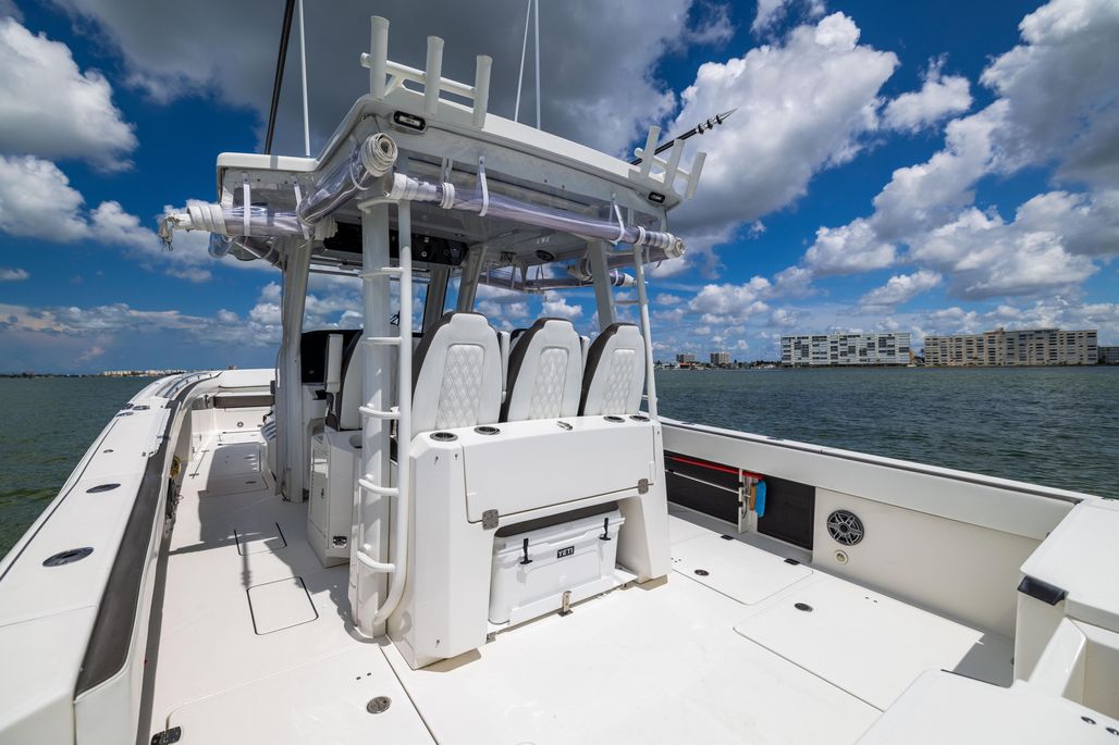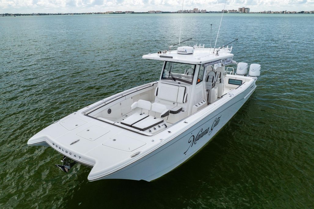 Introducing the stunning 2022 World Cat 400 CC-X, a remarkable power catamaran that embodies both performance and elegance. With an overall length of approximately 39.67 feet, this vessel is crafted from durable fiberglass, ensuring a robust and reliable structure. Powered by four Yamaha 300 DES outboard engines, each delivering 300 horsepower, the 400 CC-X promises exhilarating speed and agility on the water. The stainless steel 3-blade propellers enhance efficiency, making every journey a smooth experience. Equipped with joystick control, maneuvering this catamaran is effortless, allowing for precise navigation in various conditions. The design includes ample space for relaxation and entertainment, making it perfect for family outings or social gatherings. Whether you're cruising along the coast or exploring hidden coves, the Mama Gato is ready to deliver unforgettable adventures on the water.