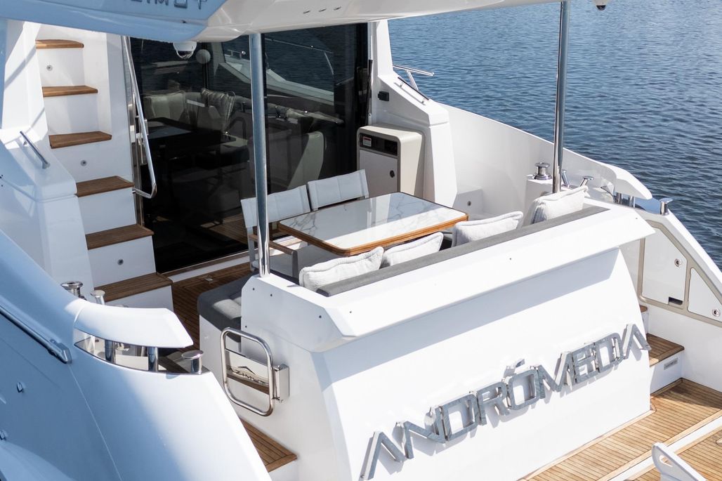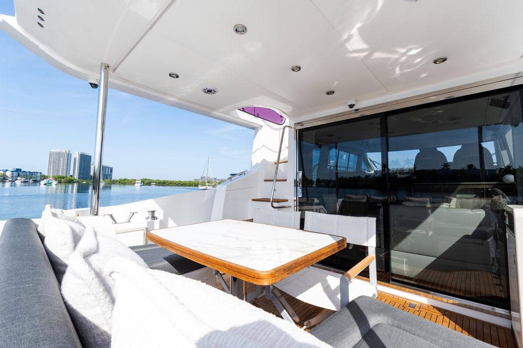 Spacious Flybridge – Ideal for entertaining with ample seating, wet bar, and sunpad