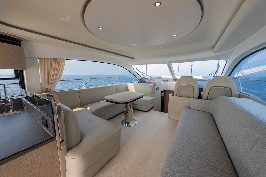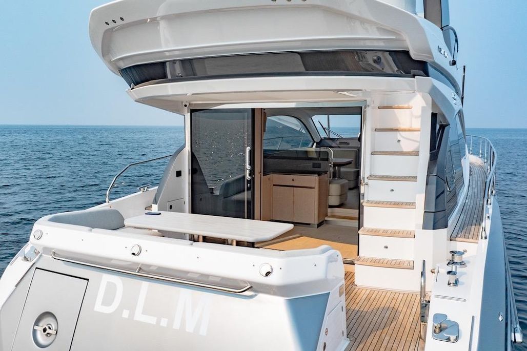 - Flybridge furniture with refrigerator and BBQ
