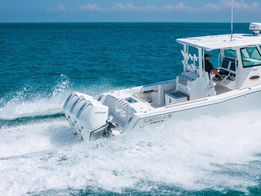 You’ll be hard-pressed to find a cleaner, better-maintained boat on the market! This Caymas 341CC has been meticulously cared for—always stored high, dry, and covered. With just 135 hours on the clock, the powerful Triple 300 Mercury V8 engines come with warranty coverage through August 2027, giving you peace of mind for years to come.