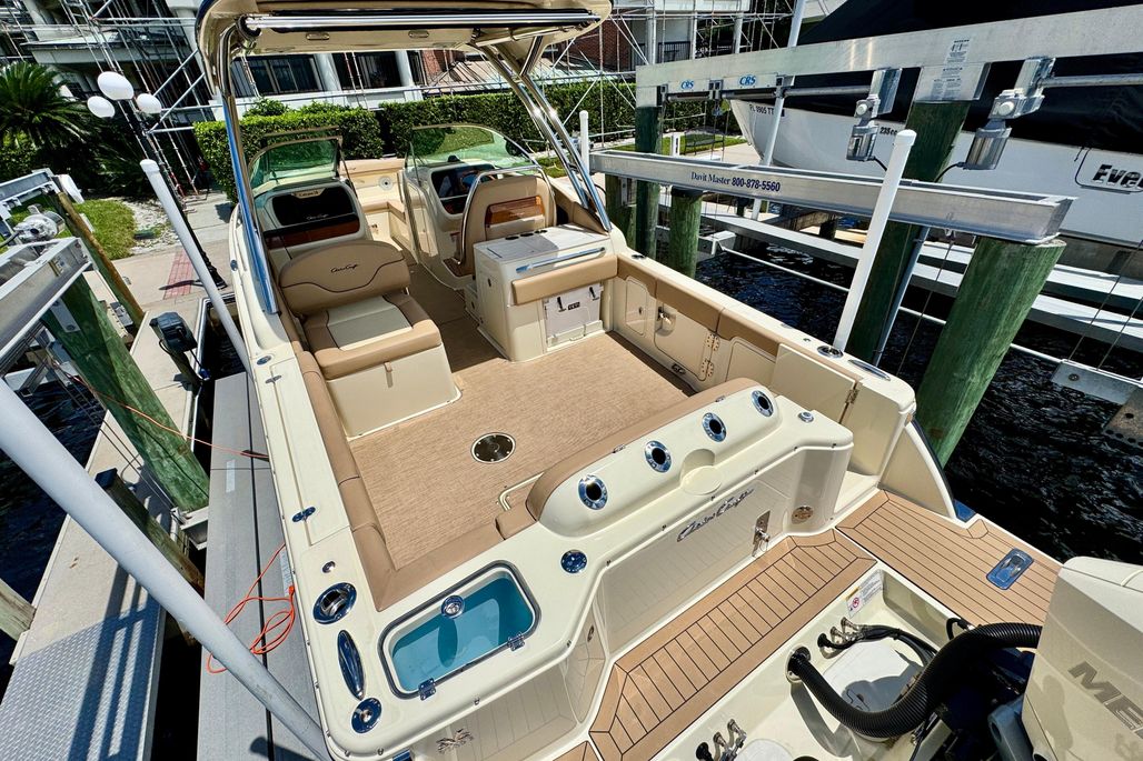 The Calypso 28 offers ample space and all the essential amenities for hosting memorable excursions. For easy access to the dock and the water, a starboard side-boarding door and extended swim platform are both standard.