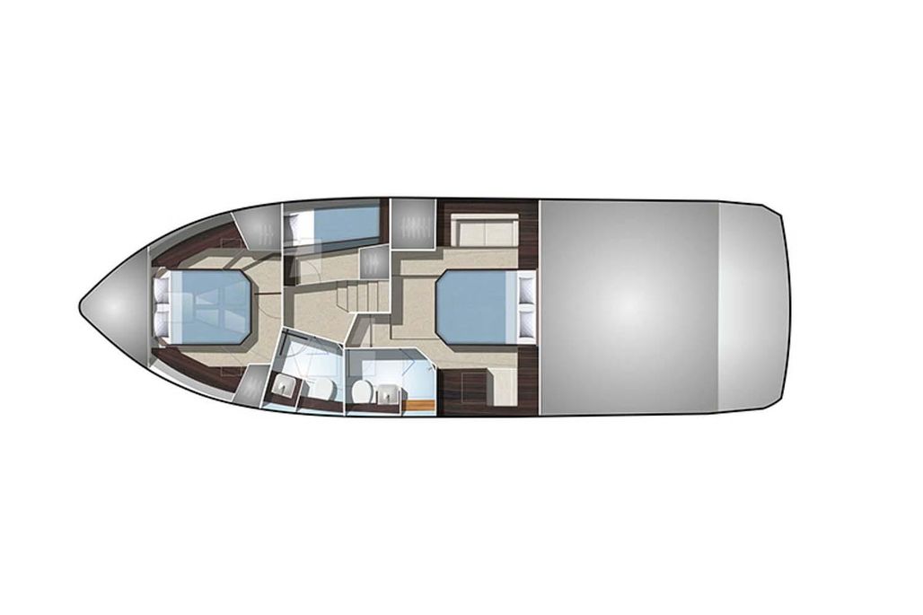 The 470 Sky’s hallmark is its transformative design — enjoy the sleek, sporty lines of a flybridge yacht while benefiting from a fully enclosed upper helm that converts to open-air in seconds. Paired with Galeon’s renowned build quality and thoughtful interior layout, this yacht is ideal for both weekend escapes and extended coastal cruising.