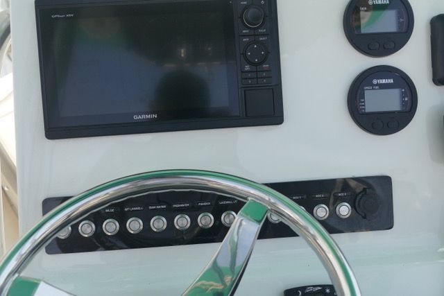 LIKE NEW- INDOOR KEPT - 65 HOURS ON YAMAHA 250 - T-TOP - TRAILER INCLUDED - GARMIN CHARTPLOTTER / SOUNDER - CLARION STEREO W/BLUETOOTH - GARMIN VHF RADIO - TRIM TABS - UNDERWATER LIGHTS - ALUMINUM SKI POLE ARCH - JADE GREEN HULL COLOR - WARRANTY UNTIL 6/14/26.