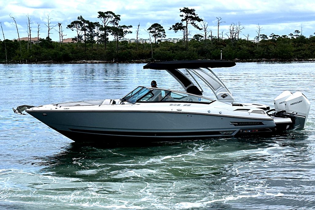 This 2023 Monterey 305SS is an exceptionally clean, well-kept luxury sport boat that shows like new. Designed for entertaining, cruising, and high-performance fun, the 305SS delivers Monterey’s signature fit and finish with aggressive styling and a smart, open layout.