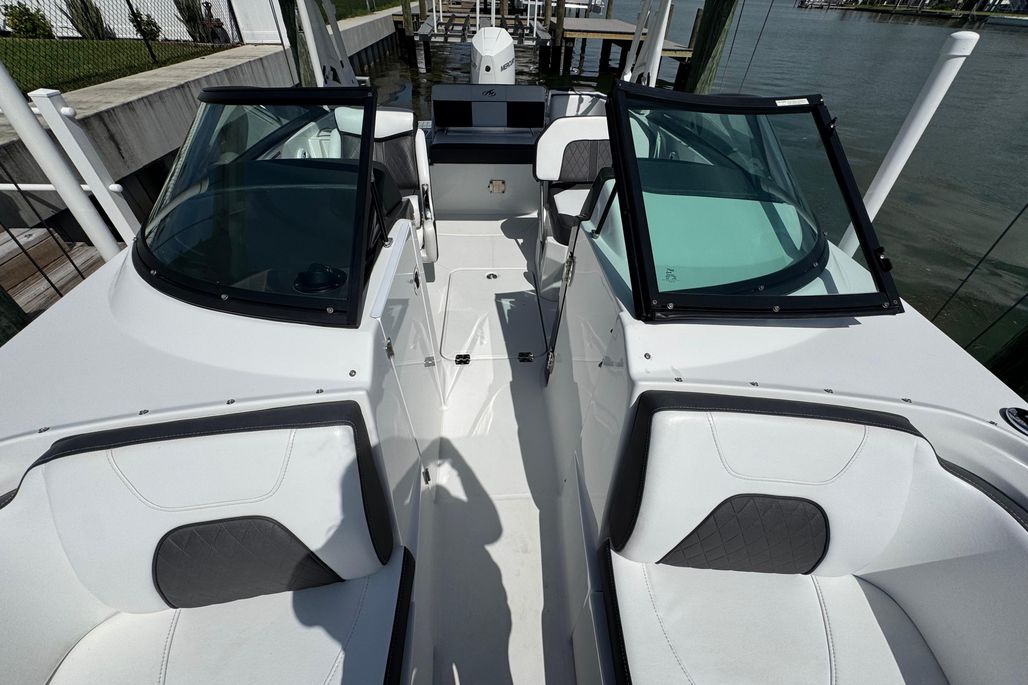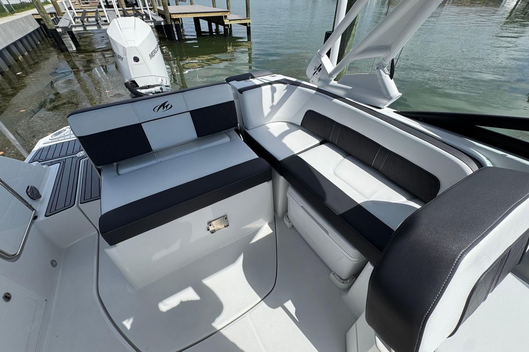 Introducing the stunning 2023 Monterey M-45 Bowrider, a remarkable vessel that combines elegance and performance. With an overall length of 24 feet, this boat is crafted from durable fiberglass, featuring a modified Vee hull shape that ensures a smooth ride on the water. Powered by a robust 250 hp Mercury 250XXL Verado outboard engine, this bowrider delivers exhilarating speed and agility, perfect for thrilling outings. The stainless steel 3-blade propeller enhances efficiency and performance, making every journey enjoyable. Designed for comfort, the M-45 includes a well-appointed head, ensuring convenience during your adventures. Its thoughtful layout provides ample space for relaxation and entertainment, making it an ideal choice for family outings or gatherings with friends. Experience the joy of boating with the Monterey M-45, where style meets functionality in every detail.