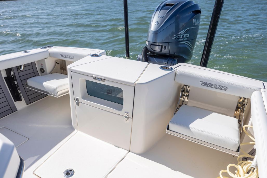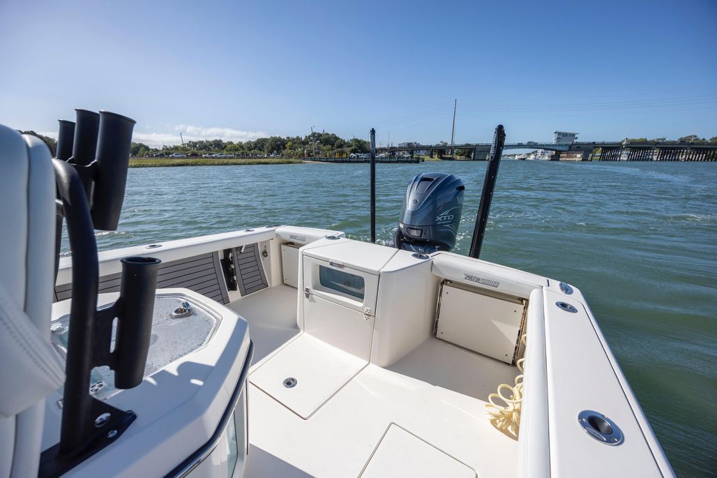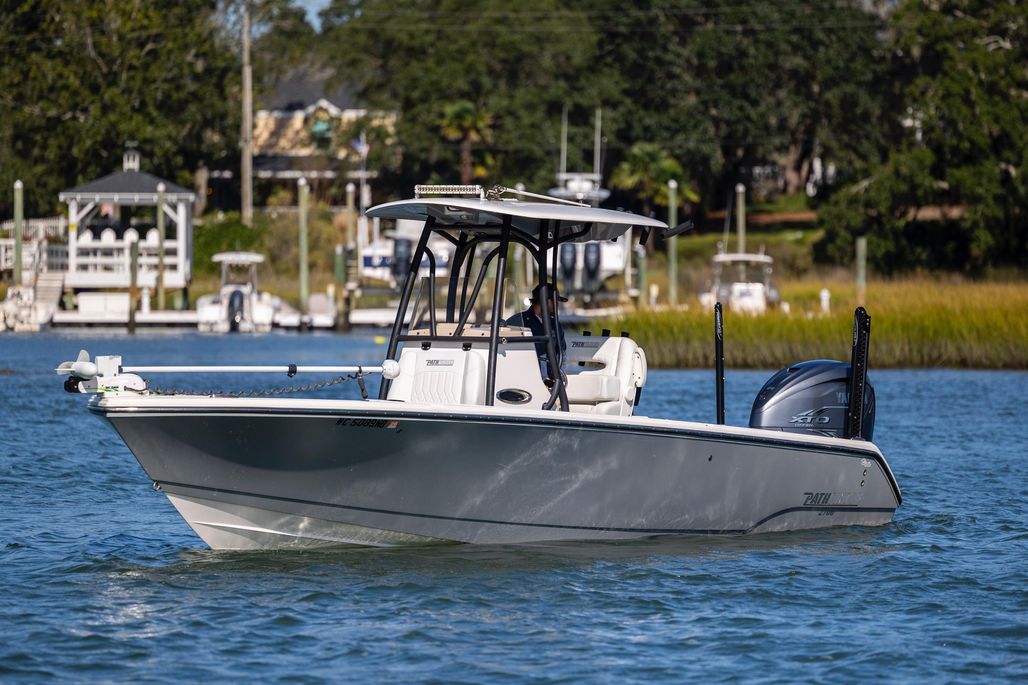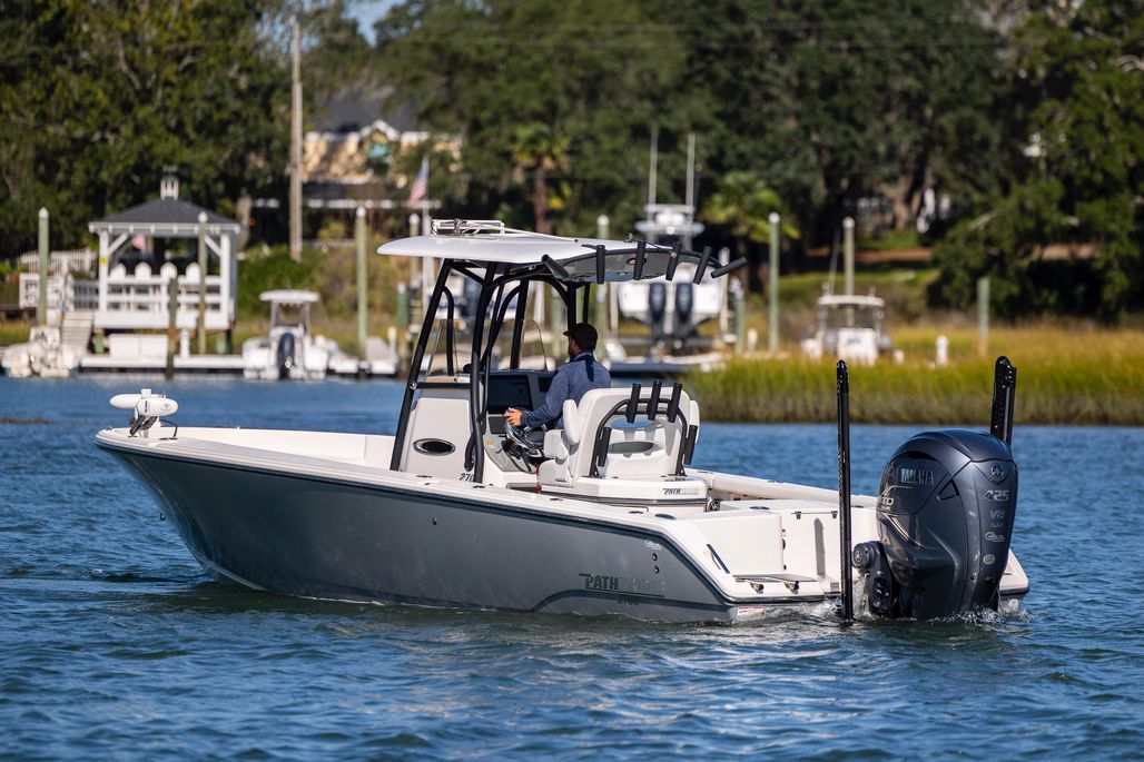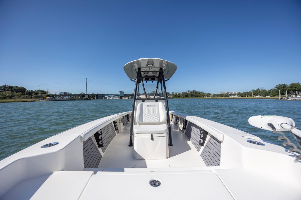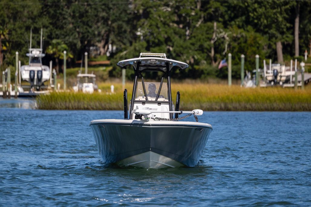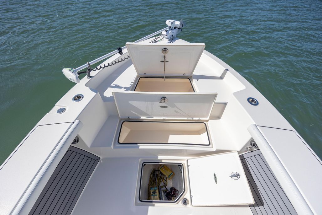 With nearly 70 gallons of standard livewell space, 3 insulated fishboxes totaling over 120 gallons, and dedicated rod racks for 18 rods ranging from fly rods to bottom and trolling gear, this boat allows you to carry everything you need to successfully target surface swimmers to bottom dwellers and everything in between. Plus, there’s enough dry storage to bring multiple cast nets and loads of tackle bags, and the console can even be optioned with a head. Finally, with a max horsepower rating of 450, standard jackplate, and a double-stepped, VARIS constructed hull, the next spot is never too far away.
