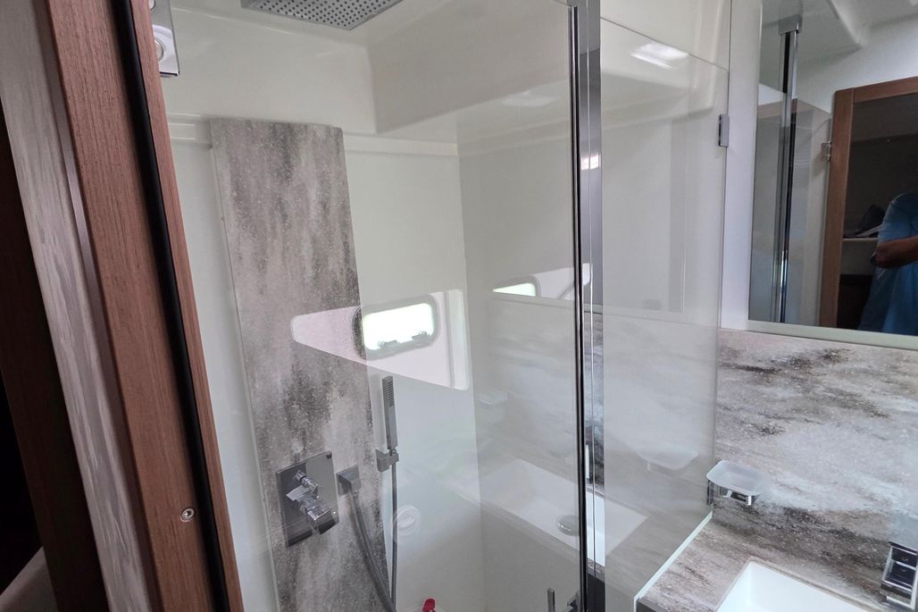Accommodation: The yacht is available in 3- or 4-cabin layouts. The standout feature is the full-beam owner's suite located forward, which includes an exceptionally spacious bedroom, split his-and-hers bathrooms, and ample storage.