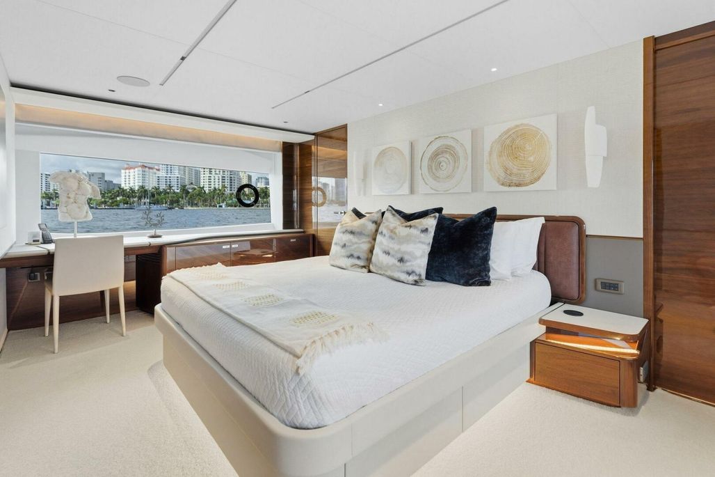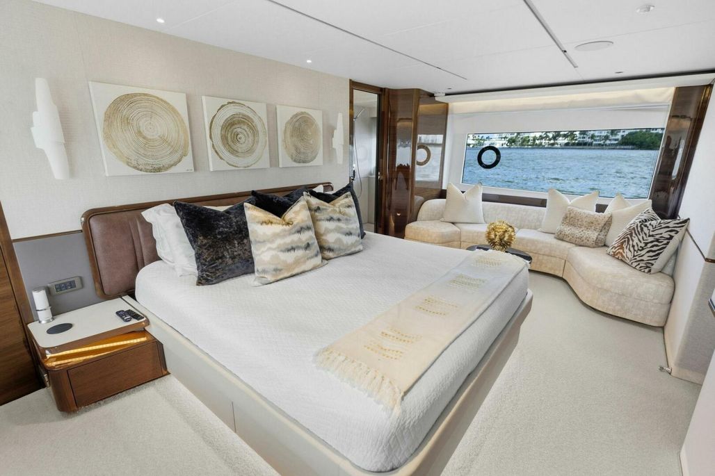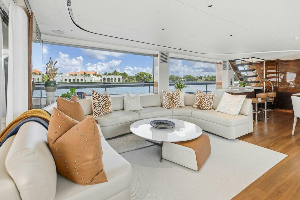 The 2023 Princess X95 "Lady Lion" is the ultimate luxury yacht, combining bold design, expansive interiors, and exceptional performance. Featuring five staterooms—including a forward main deck master—convertible cabins, and a redesigned beach club with crew accommodations, she offers unmatched comfort and versatility. Entertain in the salon, dining area, flybridge, or on deck with a foredeck spa, cockpit bar, and dual flybridge bars. Full teak decking, twin kedge anchors, side gates, an electric aft awning, and a 1,000 kg electro-hydraulic transformer platform enhance style and functionality.