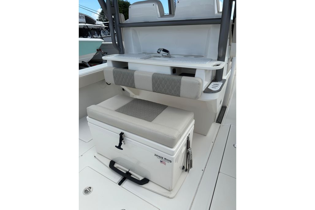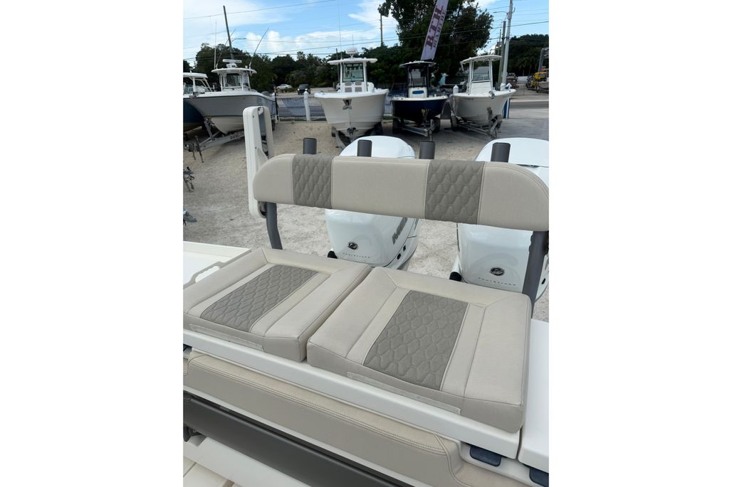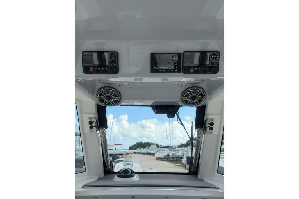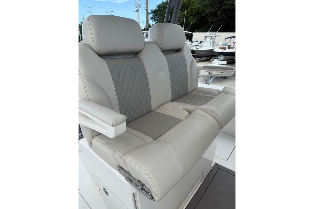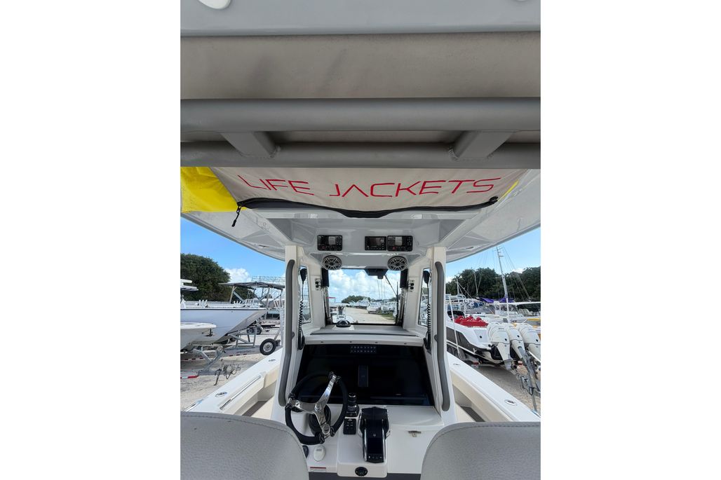 The Solace 32 is equipped with many high end options that contribute to there ultimate boating lifestyle of a vessel that is designed to fish hard and have all the amenities to cruise the islands. She has a large cabin with marine head, a great forward seating area as well as 2 comfortable helm chairs protects from the environment with the surrounding glass windshield which has the option to open. In the aft section of the boat there is a large deck allowing for sufficient room while fishing as well as a rigging table, slide out cooler, Dive door, fish boxes and two live wells.