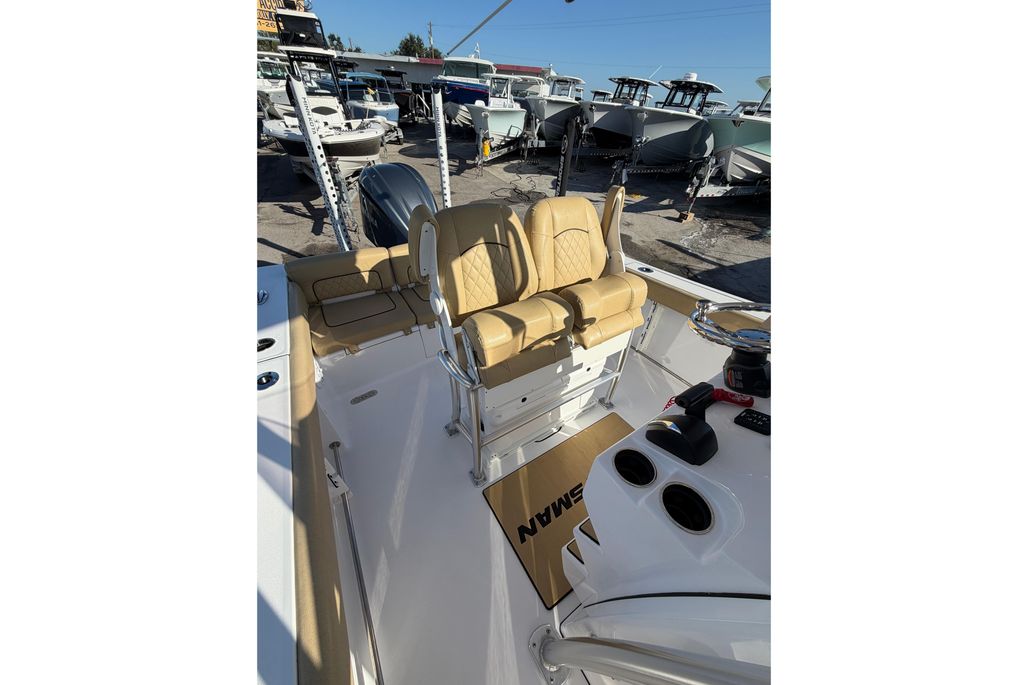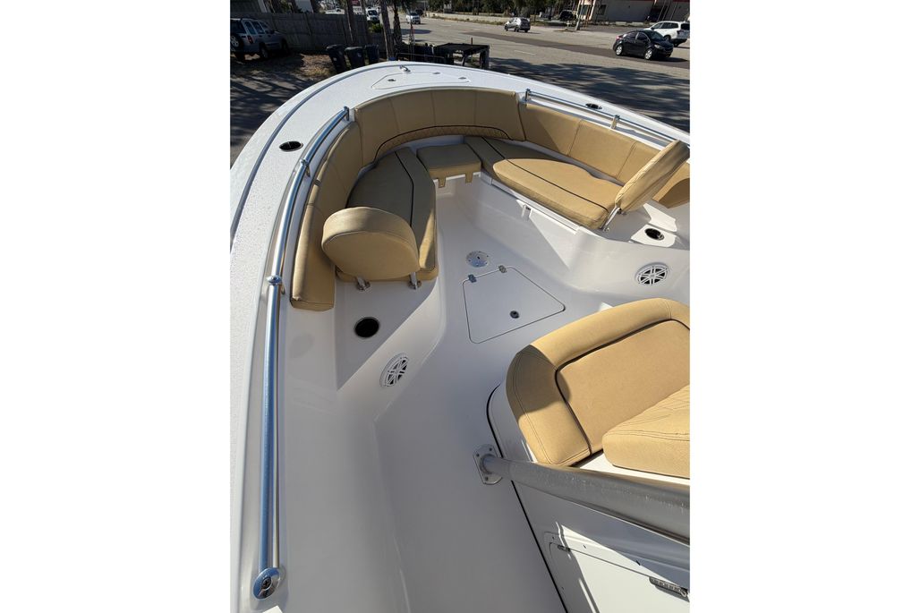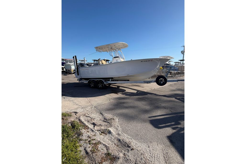 This 2023 Sportsman 241 Center Console is in excellent condition. It is like New. Trailer Included!! It is powered by a Yamaha 300 HP 4-Stroke with Digital Throttle & Shift. There are only 144 hours on the Engine and Yamaha Warranty on it till 11/25/2025. It has Two Garmin 1242 XSVT 12" Screens inset in the dash. The boat is loaded with great options such as Two Talon Raptor 10' Shallow Water Anchors, and the YETI Sliding Cooler w/ Tackle Storage under the helm seat. It also has a Bow Table, VHF Radio & an awesome JL Audio stereo system w/ 8 JL Audio Speakers. It comes with a very nice Road King Trailer with aluminum wheels and a spare tire is included. This is a one owner boat. It has been stored in a High and Dry its whole life.