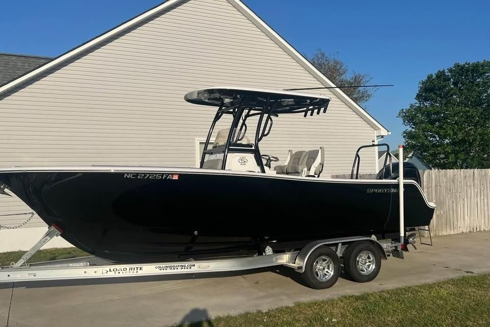 The 242 is built for serious fishing. Ready to perform with a standard fiberglass hard-top, a full-size console with inner liner, Dual 12” Garmin displays, upgraded leaning post seats and plenty of room behind the leaning post. On the starboard side, you will find a large 25-gallon livewell. This model is powered with a Color matched 300HP Yamaha engine.