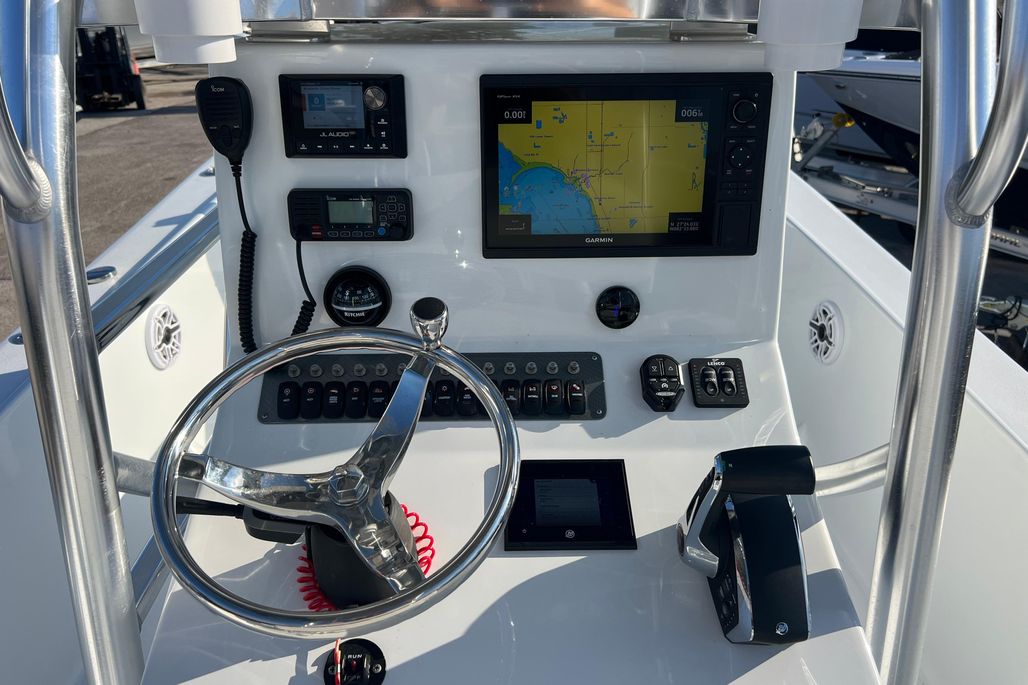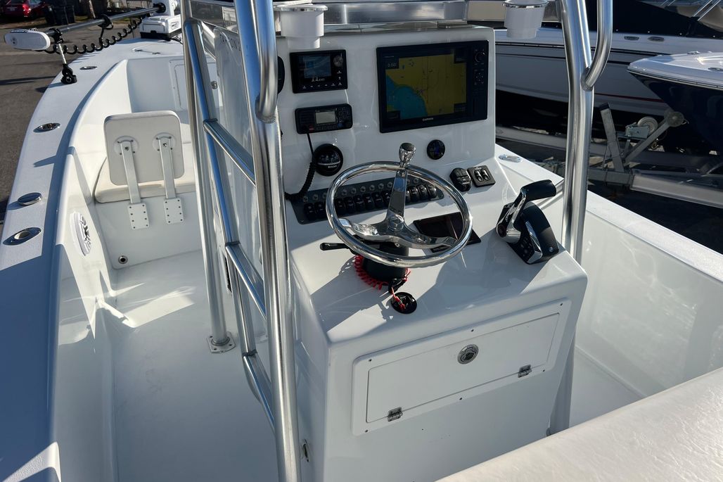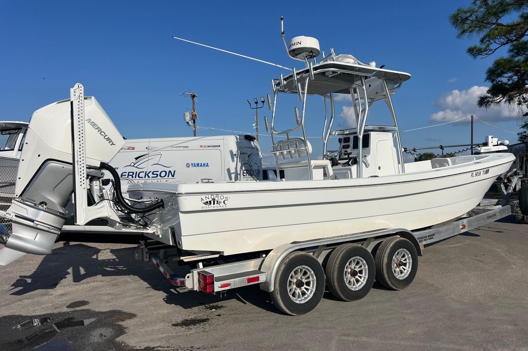 If you are looking for the Ultimate Fishing Boat for inshore and near shore then look no further than this Andros Tarpon 26! This boat only drafts 10" of water perfect for fishing in the bays and flats but it also has a big bow and deep freeboard making you feel very comfortable going offshore as well. This boat was kept in a High and Dry since new and it shows like a brand new boat. The owner kept it perfect. The boat is powered by a Mercury 300 HP 4-Stroke V8 with only 208 hours on it. The engine has Mercury Gold Warranty on it till 5/18/2029!!! The Tower is incredible! It is very easy to get into it and it has amazing visibility up there for sighting fish or just enjoying the view. There is a complete set of Electronics and Controls up there. The boat has so many features and Accessories including Two Power Pole 10' Blades, Porta Jack, Minn Kota Trolling Motor, Radar, Stereo, Garmin 12" Screen, VHF Radio, Bow Cushion Set w/ Removable Backrests, & Light Bar. The Trolling Motor batteries are set up with the Stealth Battery Charger so the batteries are being charged while the engine is running so you barely ever have to plug in the charger to charge the Trolling Motor Batteries. You have to see this boat in person to get a feel for how much room it has in it. It's Huge!