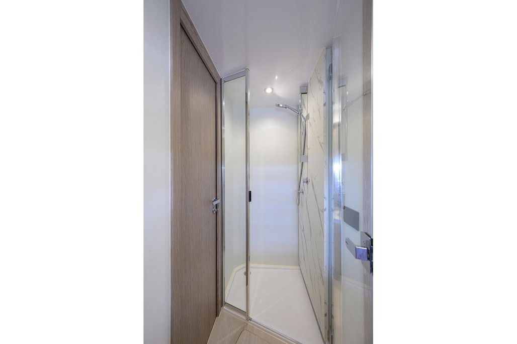BG, the 2024 Azimut 53 Fly, has one of the best layouts in the industry. Within 53 feet, she offers a full-beam master stateroom with ensuite head, walk-around queen berth in the VIP stateroom, a 2-bunk stateroom, PLUS a crew stateroom with ensuite head. The bow has seating normally only found aboard vessels over 65 feet and the flybridge is very spacious as well. On the main deck, the lower helm, salon and galley open to the aft deck seating area. Twin Volvo D11 725hp IPS 950s, Interceptor active stabilization and a SeaKeeper 9 gyro-stabilization unit deliver world-class speed, efficiency and stable ride quality. This boat is in excellent condition.