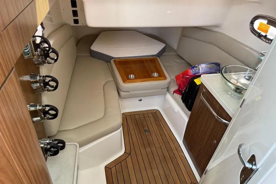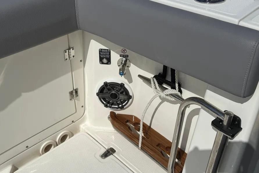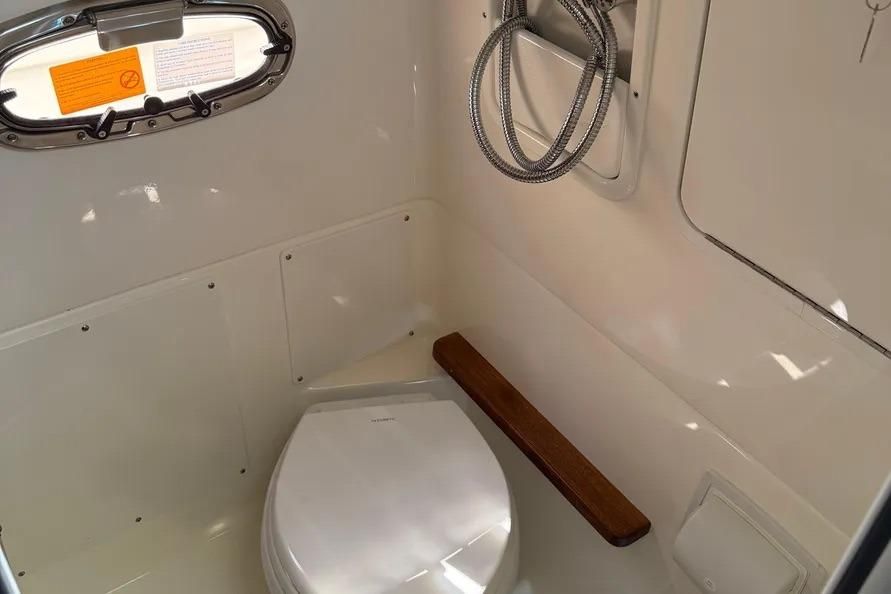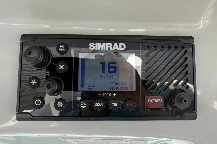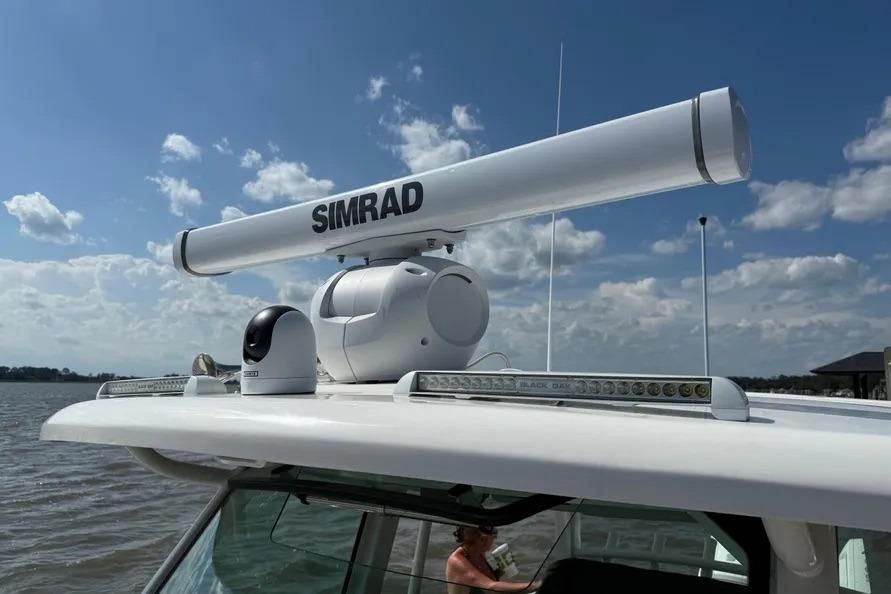 On deck, Boston Whaler’s flagship design shines through: Platinum upholstery, teak detailing, dual cockpit tables, bow and cockpit sunshades, a summer kitchen, and freezer-plate fishbox cooling. Offshore days benefit from the gyro stabilizer, deep fuel capacity, and robust fishing features, while luxury-leaning amenities make family cruising effortless. The Simrad 19"+12" navigation suite with 3D sonar provides a fully modern command center.