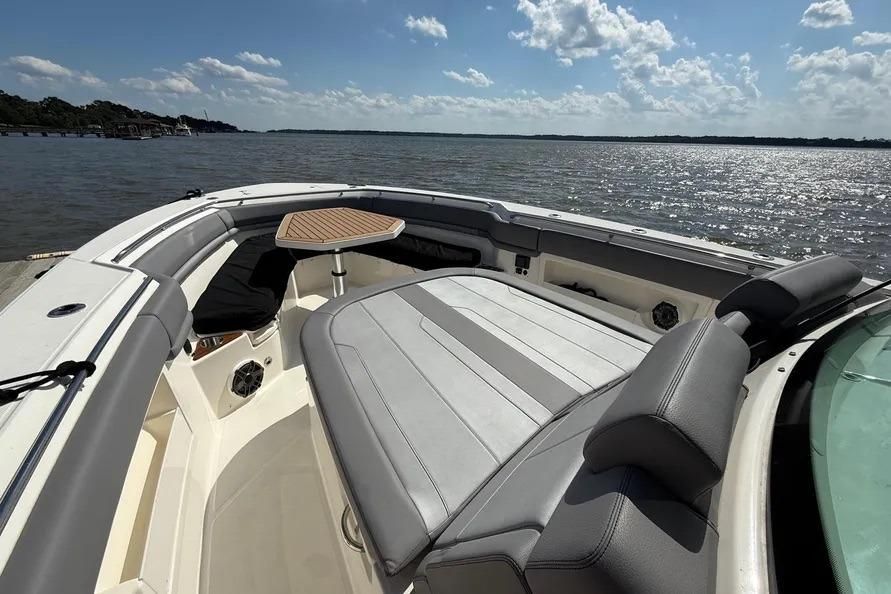 The 2024 Boston Whaler 380 Outrage is one of the most capable and versatile premium center consoles on the market—equally at home chasing pelagics offshore or entertaining guests in comfort. This example is exceptional: hoist-stored since day one, never left in the water, and professionally ceramic-coated inside and out in June 2025. Powered by the latest twin Mercury V12 600 Gen 2s with only ~45 hours and backed by Platinum Warranty through 2030, it delivers unmatched torque, quietness, and joystick precision.