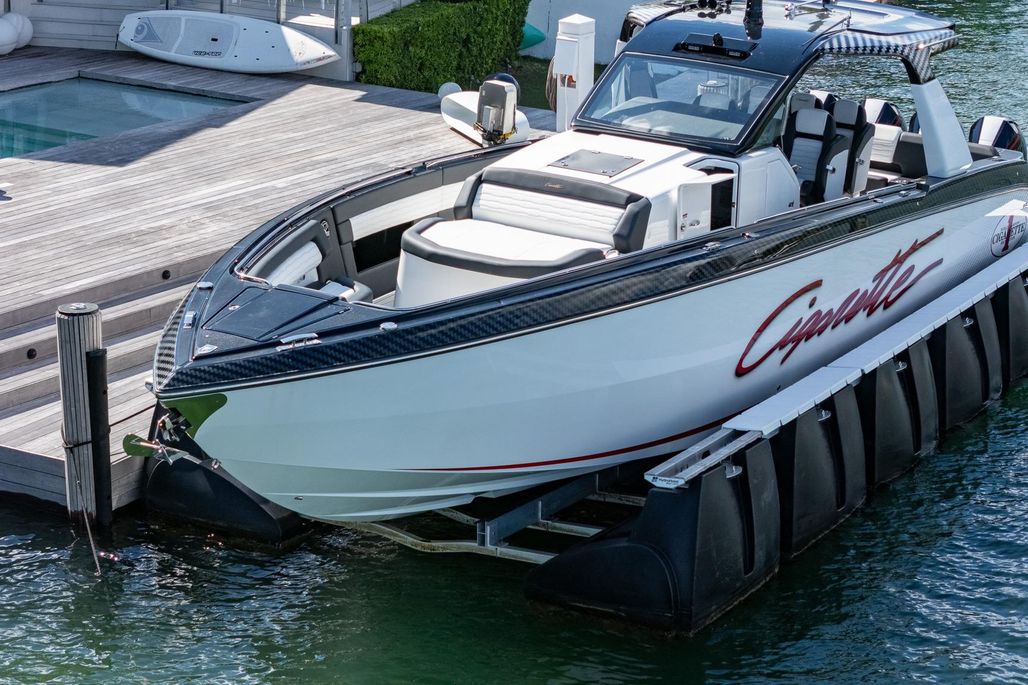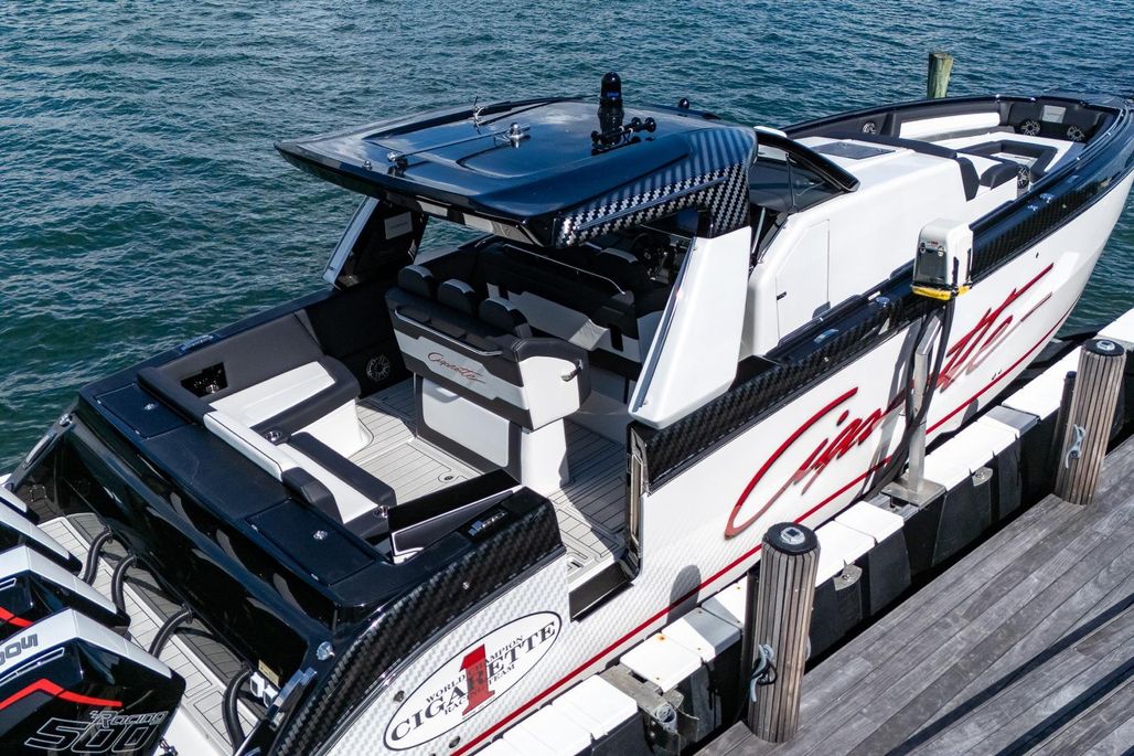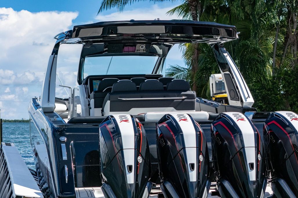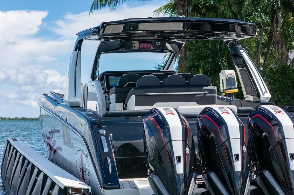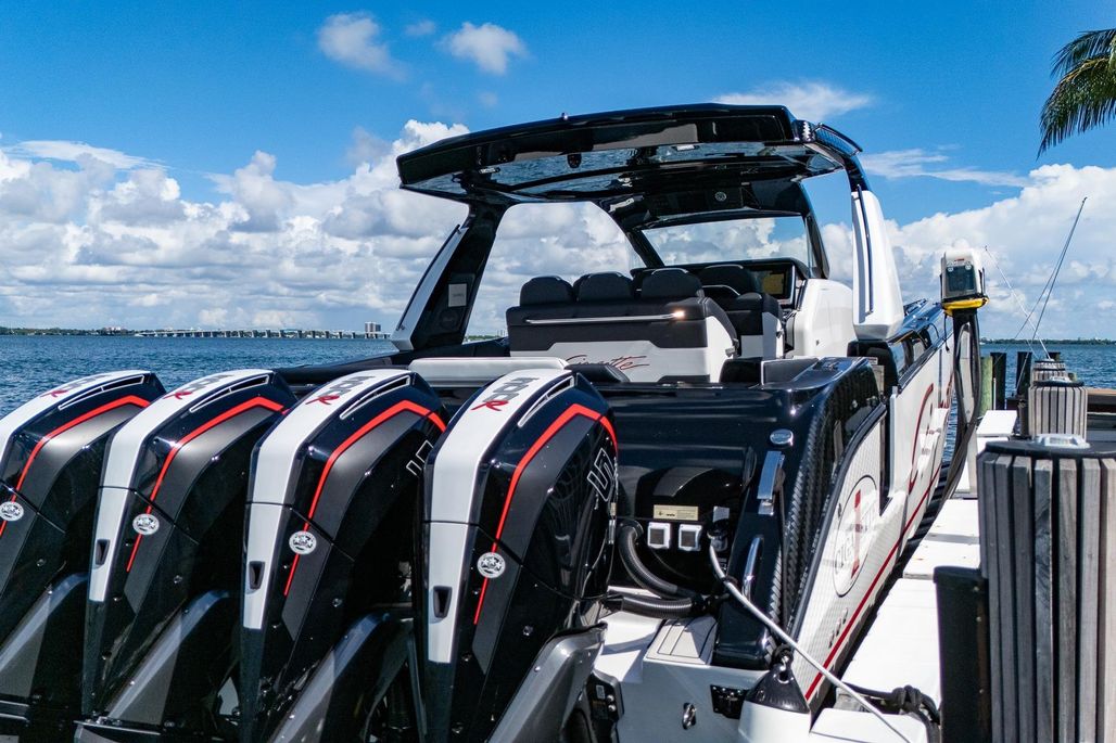2024 Cigarette 42 Auroris powered by quad Mercury Racing 500R outboards, this machine delivers unmatched throttle response, high-speed stability, and all the prestige you expect from the Cigarette Racing pedigree.