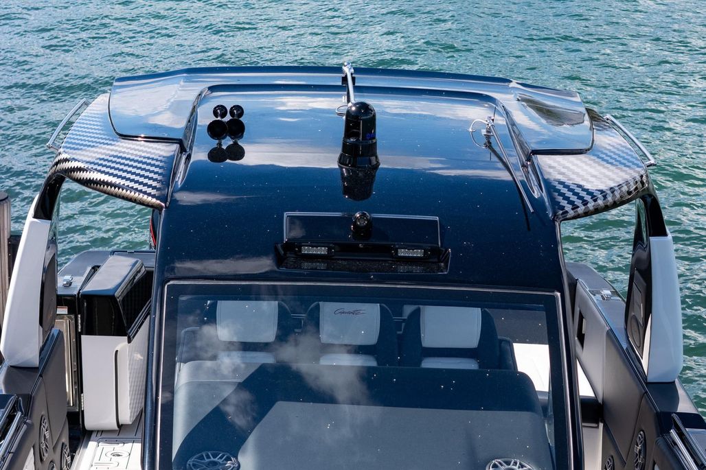 • Oversized hardtop with carbon fiber supports and integrated lighting