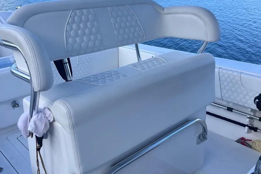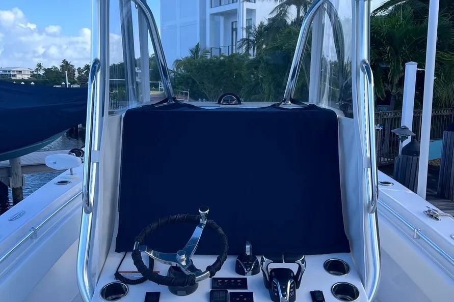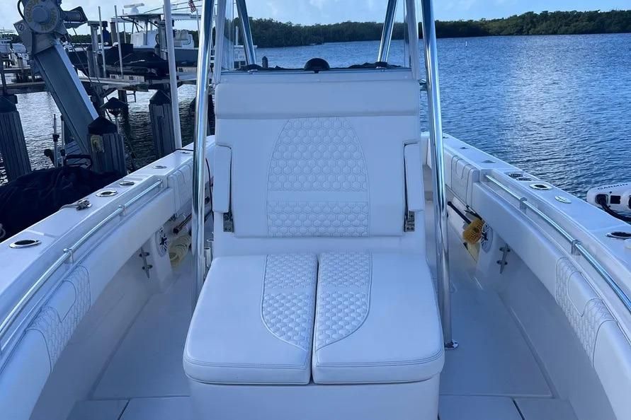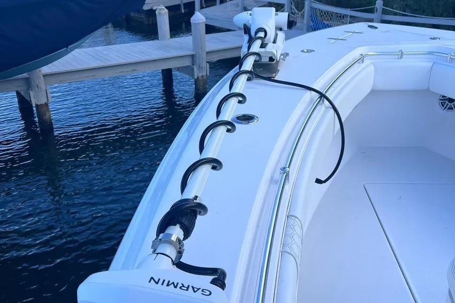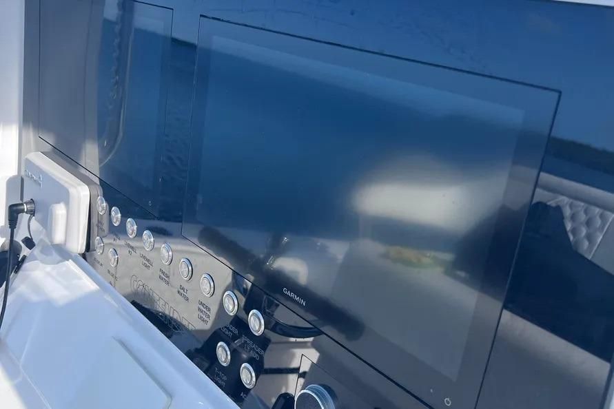 This 2024 Contender 30T is a serious offshore fishing platform, fast, efficient, and equipped with the professional-grade hardware anglers expect. Twin Yamaha 300 V6s deliver the power and reliability the 30T hull is known for, while the joystick makes tight-quarter docking effortless. At the helm, dual 16″ Garmin displays paired with open-array radar provide top-tier situational awareness offshore.
