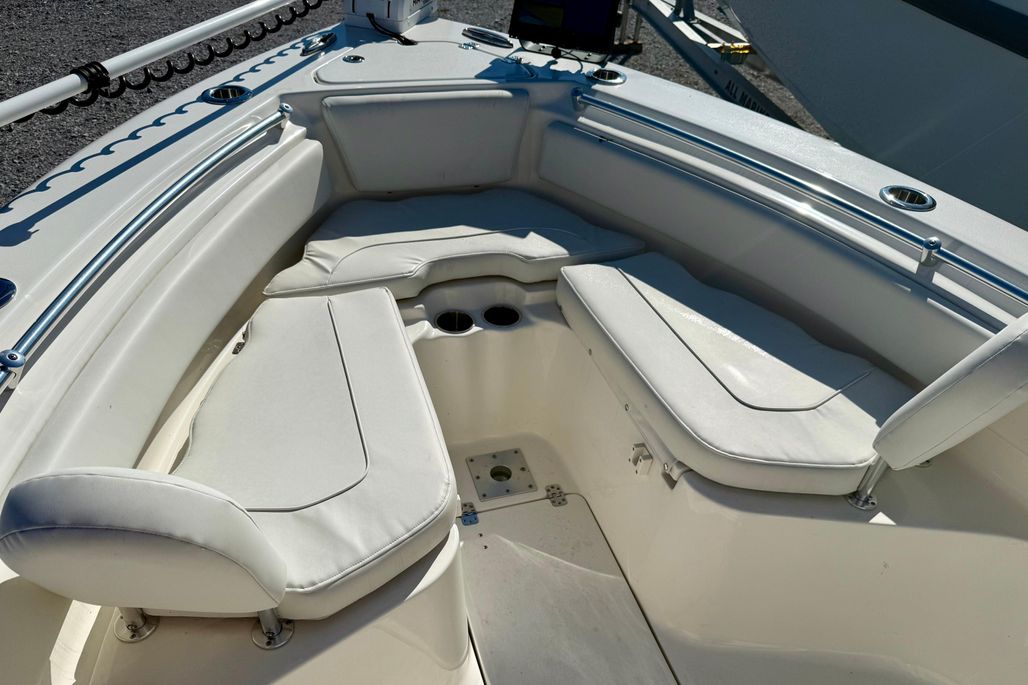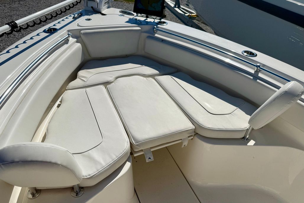 The 239FS offers the largest cockpit in its class, and loaded with features for both family comfort and serious fishing. She provides plenty of roominess and fishing features to bring home the big catch while also providing the comfort features of a relaxing bow lounge and an aft bench seat that can easily accommodate five across. With emphasis on comfort, fishing, and safety, your Family Sportsman will feature more seating and storage, even a changing/potty room, while having the fishing features you would expect in any center console design, like rod racks, trolling rod holders, live well, and even a macerated fish box in some models.