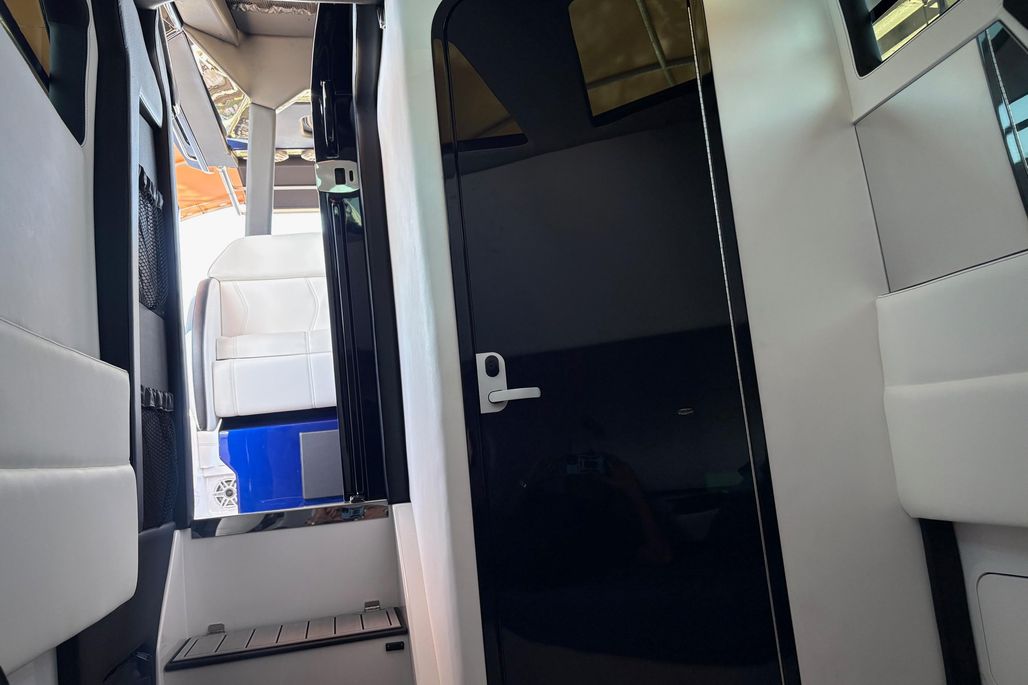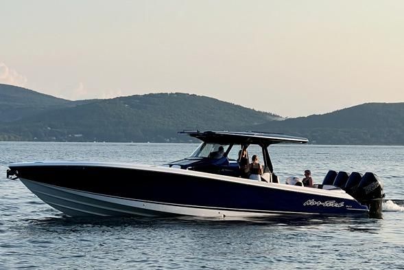 Showroom new 2024 400 Supersport. Quad Mercury Racing 500s. Hering 5 Blade Props, Twin Garmin 22" screens, Sonar, VHF, JL Audio Sound System, Bow Thruster, Issotta Steering Wheel, Electric Bow Table, Black Oak Light Bar, Sure Shade Electronic Sun Shade,Fresh Water Engine Flush, Forward Facing Back Rests, Aft Facing Lounger with Built in Cooler, Full Mooring Cover. Trailer available at additional cost.
