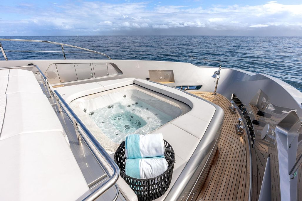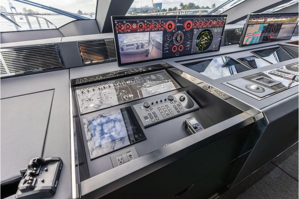 Perhaps the most customized Bellissima on the water today, it is equipped with comprehensive upgrades such as an anti-fouling system, 45” Boning pilot house monitors, custom marble cabinetry and custom wood flooring, SeaDek shelf lining, protective leather surface pads on all rosewood tops, and a tropical air conditioning system extending to all operational and living spaces. The EURO offers both sophisticated comfort and superior, advanced technological capabilities.