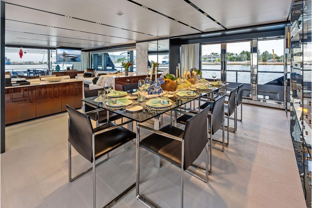 The RIVA 130 Bellissima EURO represents a spectacular and distinguished example of luxury yacht construction, commissioned by a knowledgeable yachtsman and meticulously maintained by a dedicated, expert crew. Its features include a main deck master suite, four guest staterooms with private baths, a custom rosewood interior, and a unique silver and black exterior.