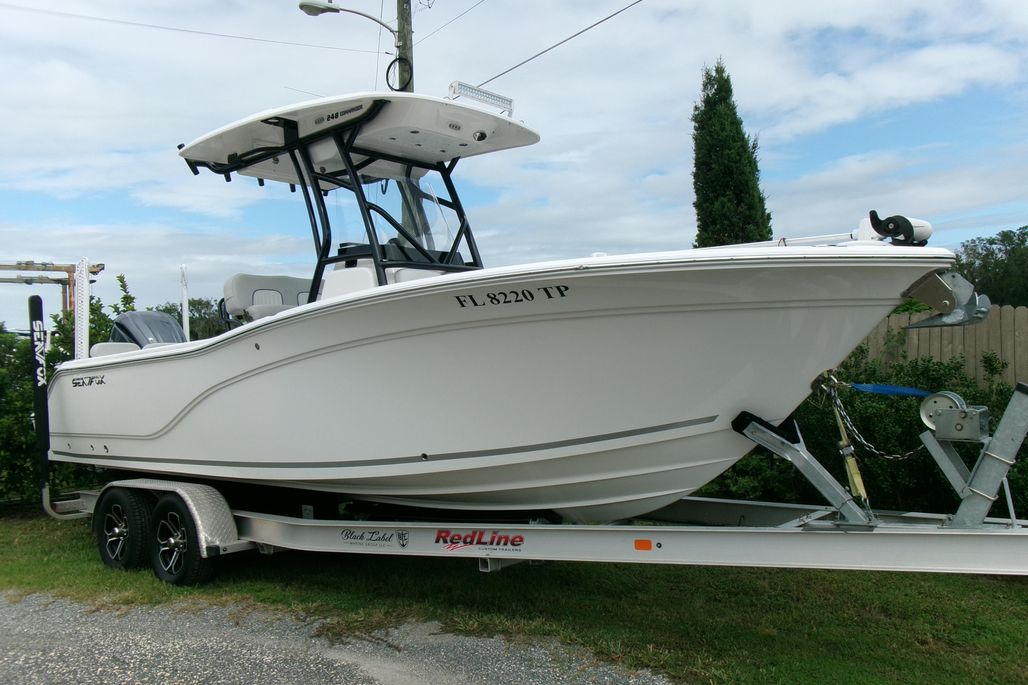 Introducing the remarkable 2024 Sea Fox 248 Commander, a stunning center console boat that combines performance and comfort. With an overall length of 24.17 feet, this vessel is designed for adventure on the water. The deep Vee hull, crafted from durable fiberglass, ensures a smooth and stable ride, making it perfect for both leisurely cruises and thrilling outings. Powered by a robust Yamaha F300XCB outboard engine, delivering an impressive 300 horsepower, this boat achieves cruising speeds of 40 mph and a maximum hull speed of 48 mph. With only 80 hours of use, it promises reliability and excitement for your next journey. Accommodating up to 12 passengers, the 248 Commander features two heads for convenience. Additional highlights include an electric windlass, enhancing your boating experience. This boat is a perfect blend of style, functionality, and performance, ready to create unforgettable memories on the water. If you want a loaded Sea Fox 248 with everything this is your boat. Call the professionals at Black Label Marine Group today and let us make your boating and fishing dreams a reality. We also offer great financing to make your boat buying process smooth and easy.