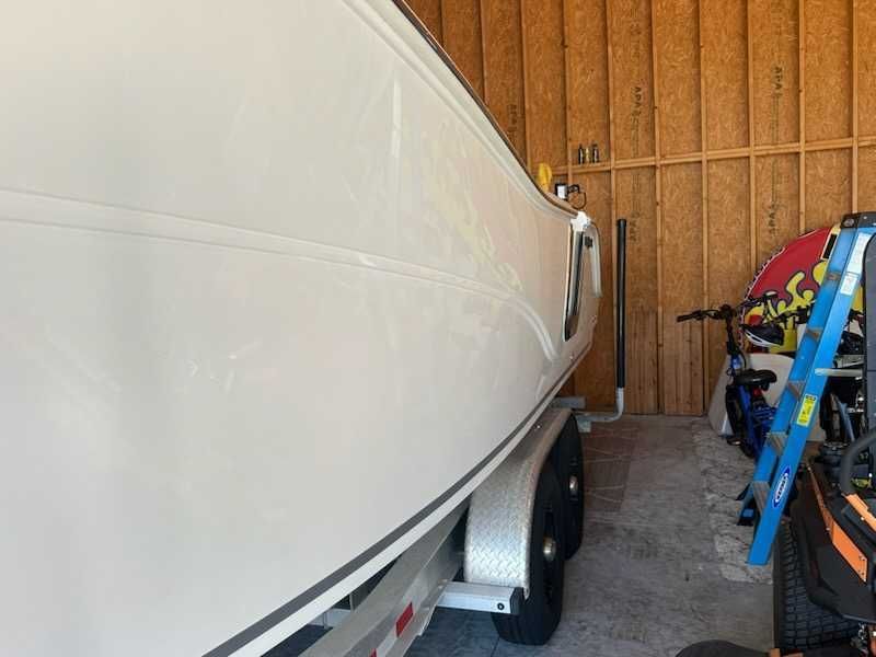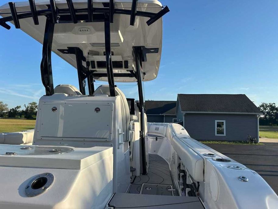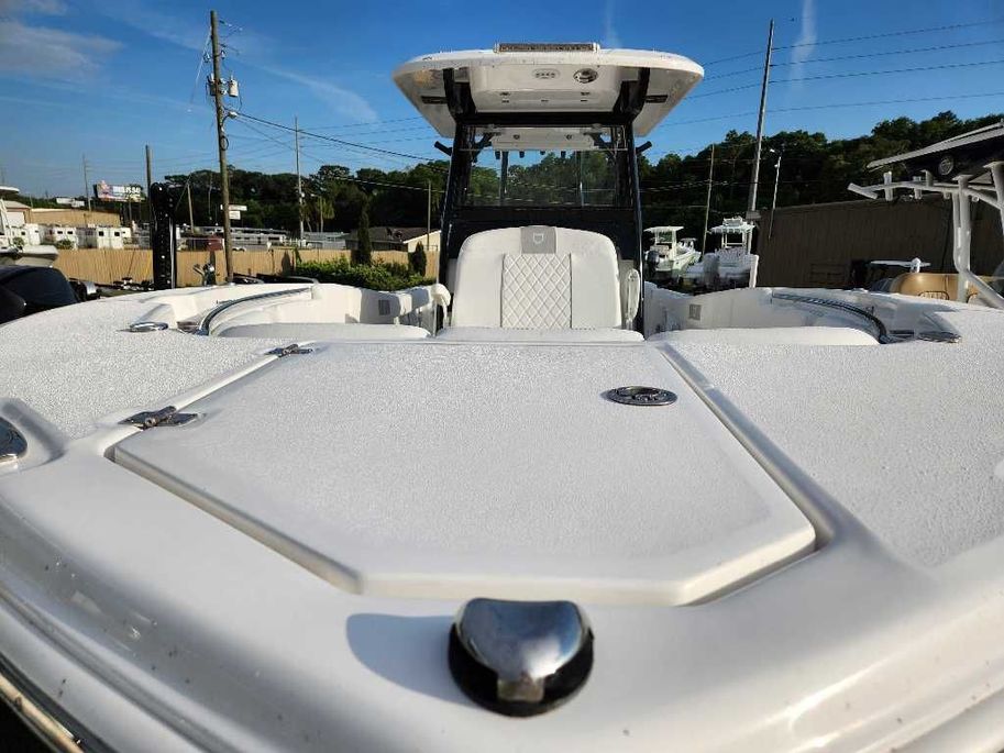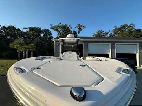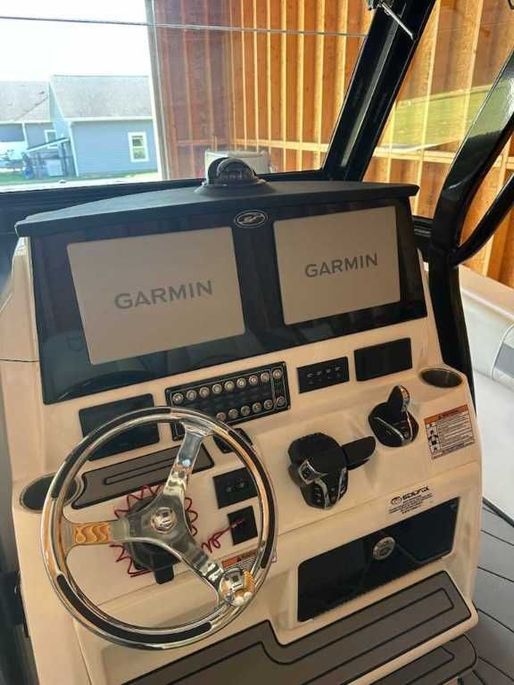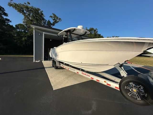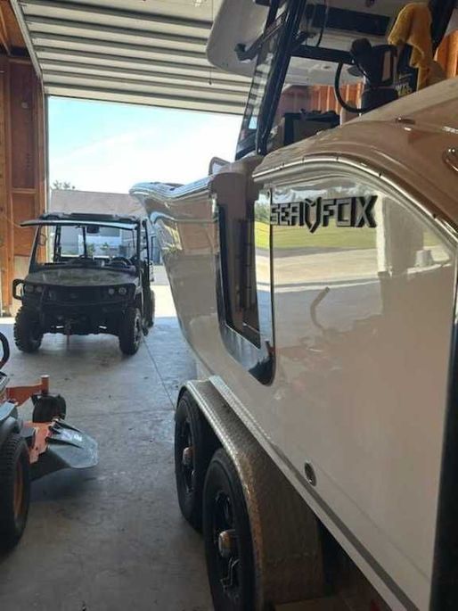 Just in on consignment from a long-time Black Label Marine Group customer — this 2024 Sea Fox 288 Commander is about as clean as they come. Always garage kept, pampered, and meticulously serviced, with only 105 hours on twin Yamaha F300XSB2s (600 HP total) and brand-new AquaTraction flooring just installed. Loaded with premium factory options plus Garmin GMR Fantom 18X radar, Garmin VHF, Ultima hardtop glass enclosure, Pro Package, electric head, bow shade, Ultima helm upgrades, and a 2024 Redline custom trailer. This is a true turn-key 28-foot offshore center console that rides big, fishes hard, and looks incredible in White Pearl gelcoat.