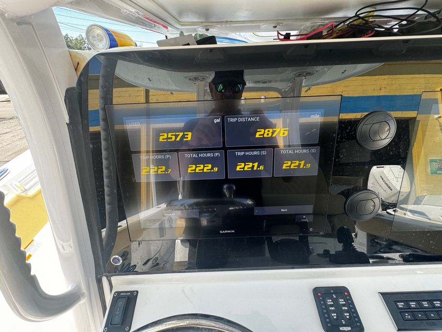 -Yamaha 450 XTO w/ 221 hours-Stand in Half Tower w/ seating and full controls-Dual 30-gallon pressurized aquarium livewells-Twin Garmin 1643 XSV w/ digital switching- Outriggers- Helm and console A/C-Garmin VHF-Lewmar Profish Windless-Electric Bow table with sunpad cushion- Bow Chase Lounger with cooler