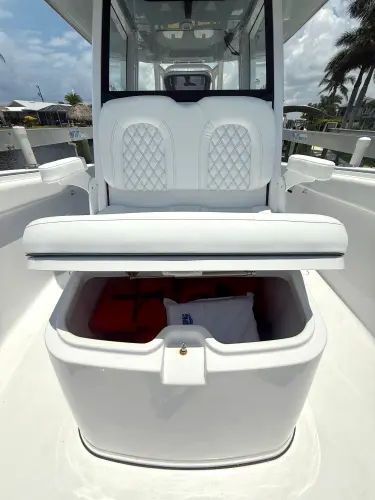 Family-Friendly Comfort: Enjoy a 275-quart console cooler, 30-gallon freshwater tank, and optional sundeck/table cushion for leisurely days on the water. The spacious layout ensures room for up to 10 passengers.