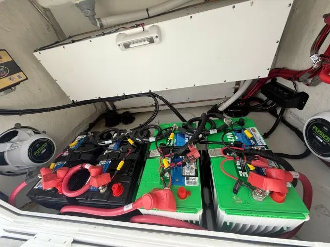 Advanced technology: Equipped with dual Garmin GPSMAP 8617 17" MFDs, Garmin GMR 424 xHD2 open-array radar, Garmin GXM 54 SiriusXM weather antenna, and a Seakeeper 2 gyroscopic stabilizer for a smooth, stable ride.