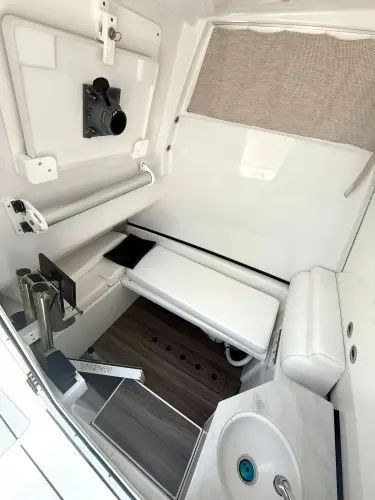 Spacious Design: Measuring 32'2" in length with a 10'10" beam, the Open 322 offers ample deck space and a convertible cockpit layout ideal for fishing, entertaining, or relaxing.