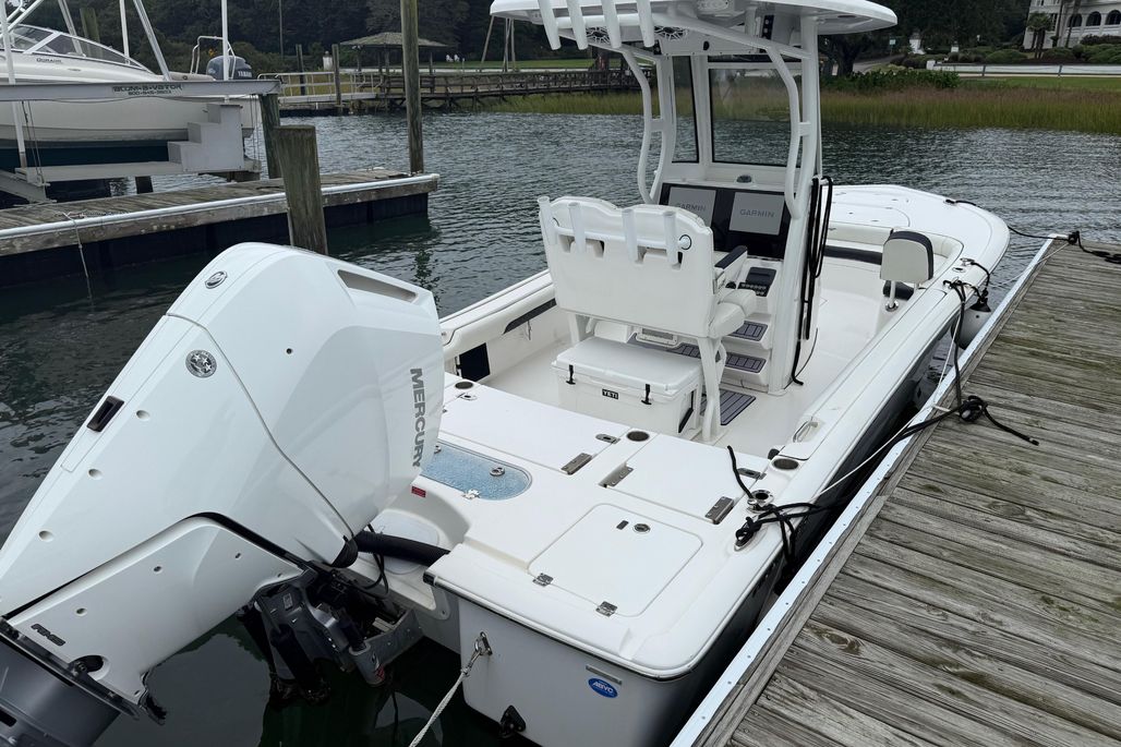 This 25' Carolina Bay is one of the best-performing bay boats in its class. The stepped-hull design delivers incredible ride quality, stability, and fuel efficiency — ideal for inshore and nearshore fishing or family cruising.