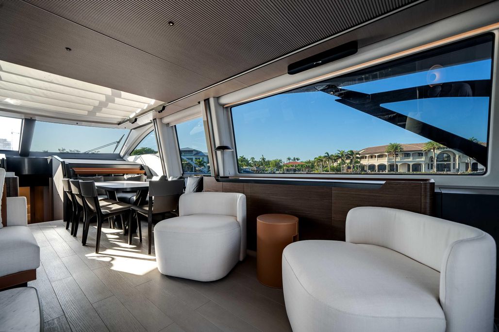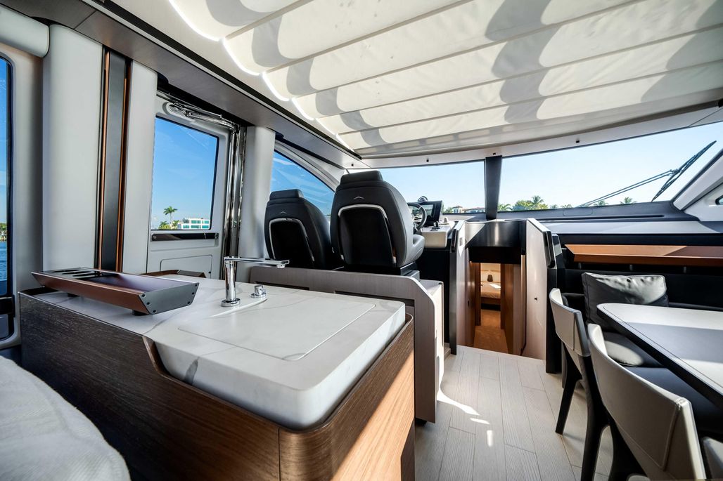 Her sleek lines and striking profile are matched by a completely fresh new design, featuring the all-new Yachtique interior, a new fresh and distinctive style that blends luxurious materials with warm, inviting tones. There is no other S8on the market with this new interior, making her a truly standout vessel.