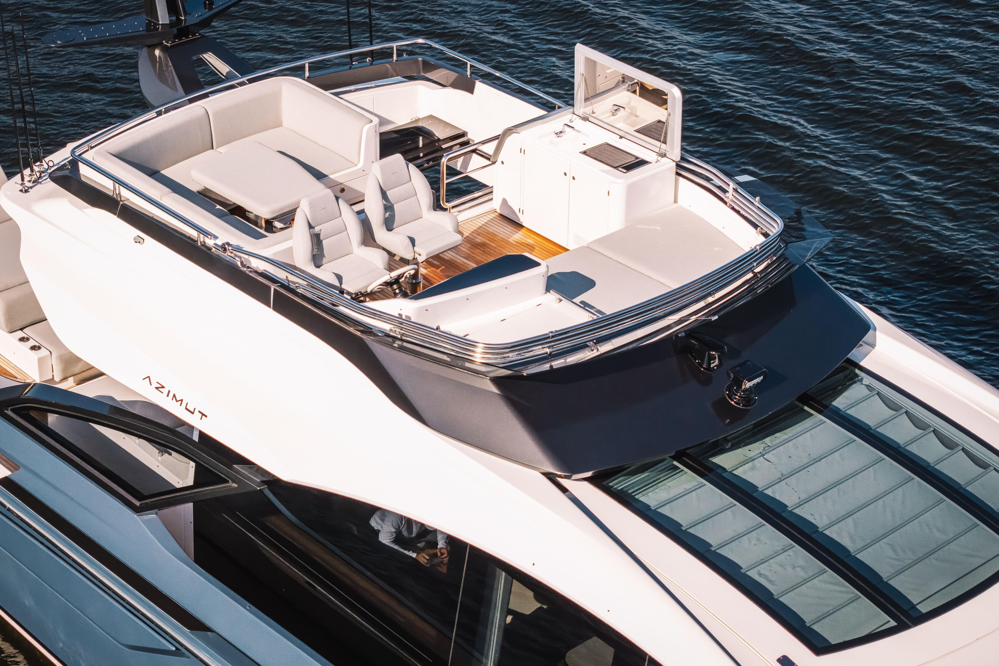 This 2025 Azimut S8 represents the pinnacle of modern yacht design, with extensive use of carbon fiber in the superstructure, transom, and garage door. Making her lighter, faster, and more efficient without compromising strength or stability.