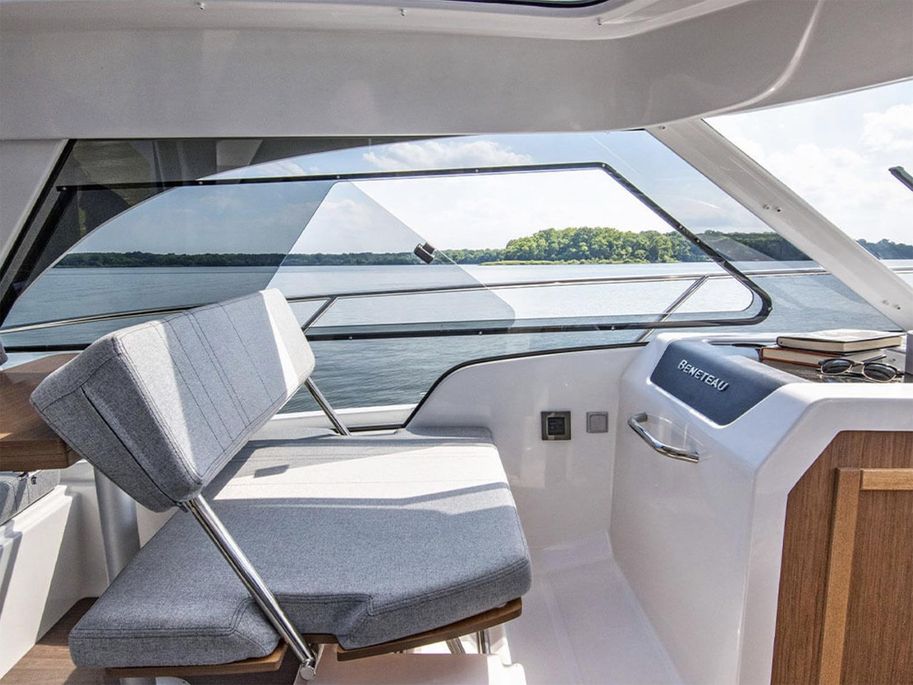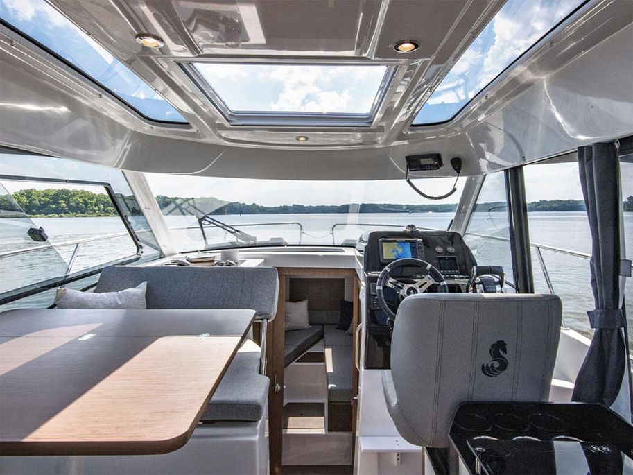 Inside, the Antares 9 maximizes space and comfort with a bright salon, a convertible dinette, and a fully equipped galley. Below deck, it features two private cabins and a full bathroom, accommodating up to four people for overnight stays. Panoramic windows fill the interior with natural light, creating a welcoming and open atmosphere that is perfect for extended trips or entertaining guests.