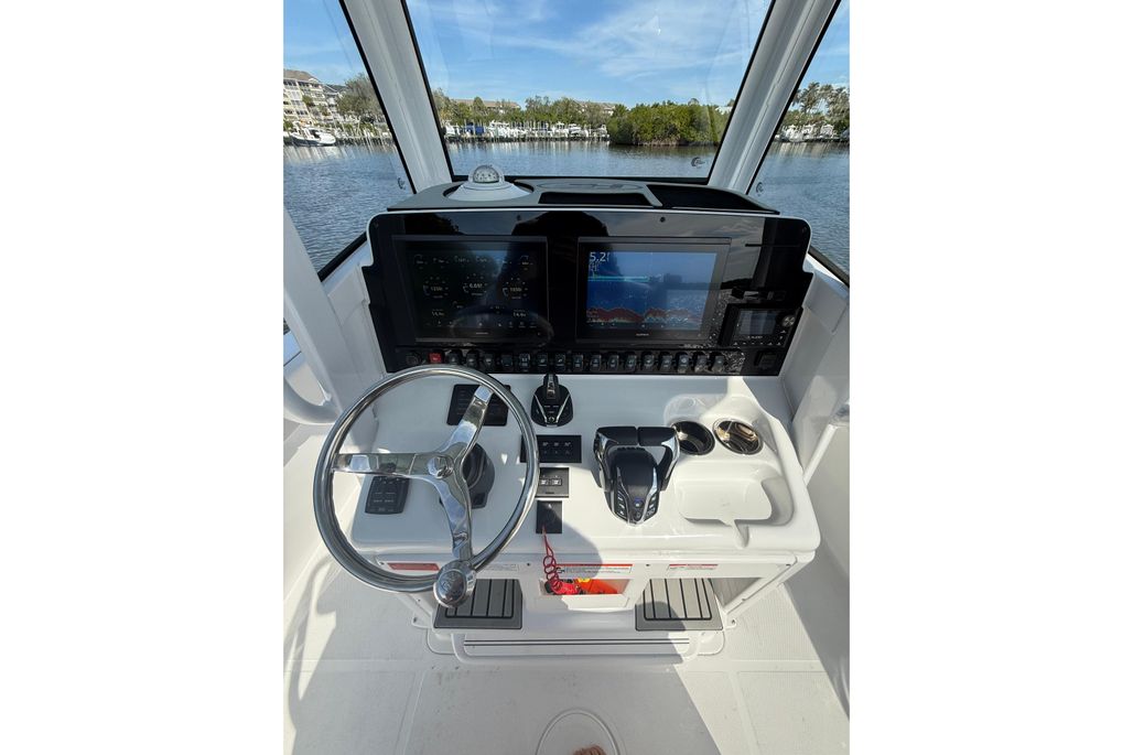 Powered by twin Yamaha F300 outboard engines, each delivering 300 horsepower, this boat is engineered for exhilarating speed and efficiency, with only 120 hours of use. The Escape 28 is perfect for adventurous outings, whether you're fishing, cruising, or enjoying a day on the water with friends and family. The thoughtful design includes ample space for equipment and features that enhance your boating experience. This used model combines modern aesthetics with reliable performance, making it an excellent choice for those seeking a versatile and stylish vessel.